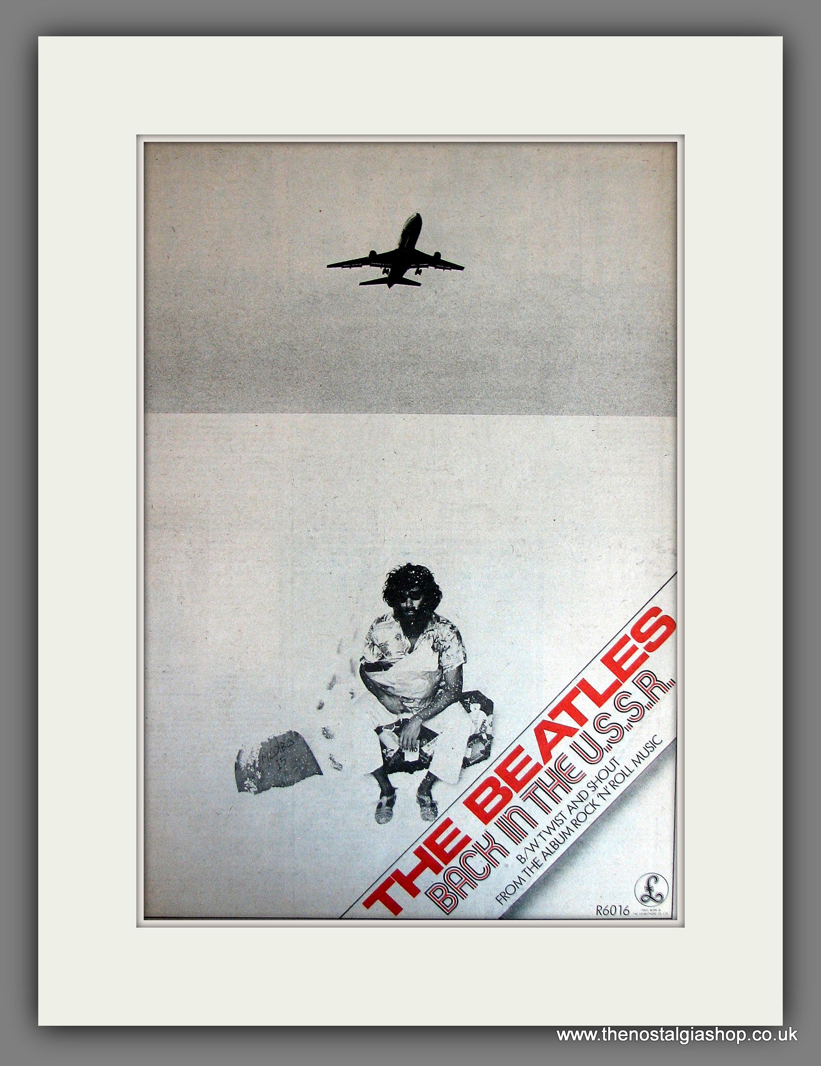 The Beatles Back In The U.S.S.R. Vintage Advert. This is a large classic Original advert 1976. Presented and Supplied in a cream bevel cut mount with backing card and clear bag. Ready to fit in 20 x 16 inch frame. The mounted advert will be posted via courier and well packed - protected with a sheet of hardboard to keep it rigid. Any questions or inquiries, please get in touch, we are here to help! All our adverts, unless clearly stated are Originals from the date shown. They make excellent pieces of wall art and stunning gifts. Many are rare and hard to find and once sold, may not be replaced. Remember you are buying a piece of history.