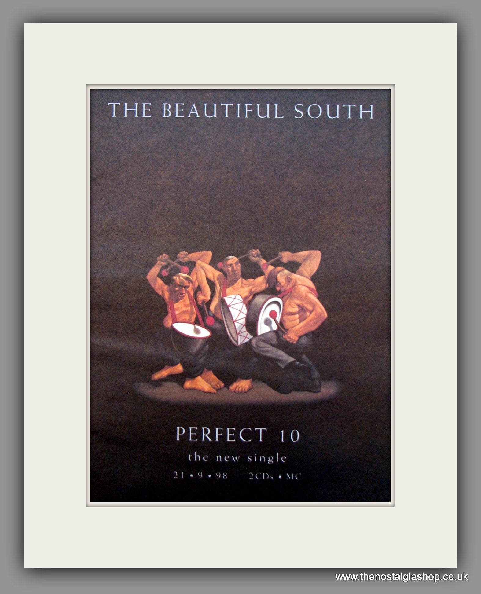 Beautiful South (The)-Perfect 10. Original Vintage Advert 1998 (ref AD10637). Presented and supplied in a cream bevel cut mount with backing card and clear bag. Ready to fit in a 20x16 inch frame. The mounted advert will be posted via courier and well packed - protected with a sheet of hardboard to keep it rigid. Any questions or enquiries, please get in touch, we are here to help! All our adverts, unless clearly stated are originals from the date shown. They make excellent pieces of wall art and stunning gifts. Many are rare and hard to find and once sold, may not be replaced. Remember you are buying a piece of history. Website watermark is not on original.