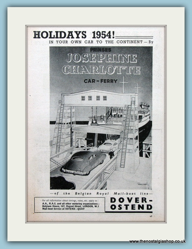 Belgian Royal Mail-Boat Line. Holidays 1954 in your own car to the continent. Classic original advert 1954. Presented in cream bevel cut mount with backing card. Ready to fit in 14 x 11 inch frame. Want it framing? If so, buy this then go to Frames Available Category. Click to buy on the suitable frame and we will do the rest. All our adverts, unless clearly stated are Originals from the date shown. They make excellent pieces of wall art and stunning gifts. Many are rare and hard to find and once sold, may not be replaced. Remember you are buying a piece of history. Website watermark is not on original.