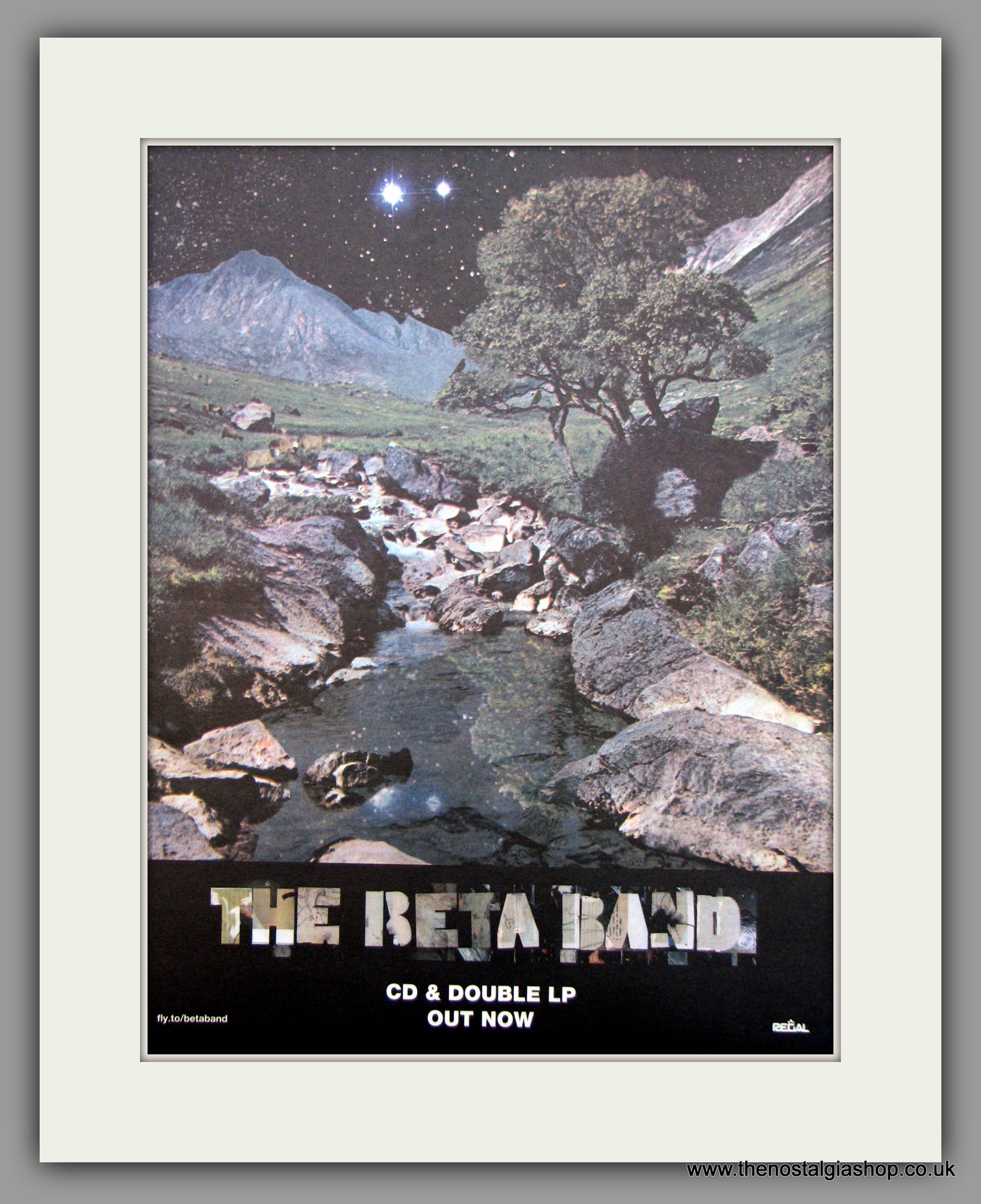 Beta Band (The). Original Vintage Advert 1993 (ref AD10634). Presented and supplied in a cream bevel cut mount with backing card and clear bag. Ready to fit in a 20x16 inch frame. The mounted advert will be posted via courier and well packed - protected with a sheet of hardboard to keep it rigid. Any questions or enquiries, please get in touch, we are here to help! All our adverts, unless clearly stated are originals from the date shown. They make excellent pieces of wall art and stunning gifts. Many are rare and hard to find and once sold, may not be replaced. Remember you are buying a piece of history. Website watermark is not on original.