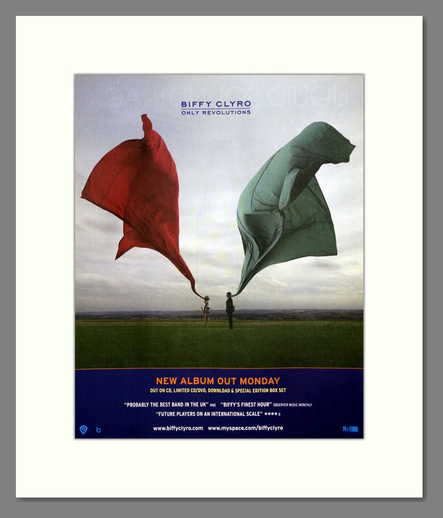 Biffy Clyro - Only Revolutions. Vintage Advert. This is a large classic original advert from 2009. Presented and supplied in a cream bevel cut mount with backing card and clear bag. Ready to fit in a 18 x 14 inches frame. The mounted advert will be posted via courier and well packed - protected with a sheet of hardboard to keep it rigid. Any questions or enquiries, please get in touch, we are here to help! All our adverts, unless clearly stated are originals from the date shown. They make excellent pieces of wall art and stunning gifts. Many are rare and hard to find and once sold, may not be replaced. Remember you are buying a piece of history. Website watermark is not on original.