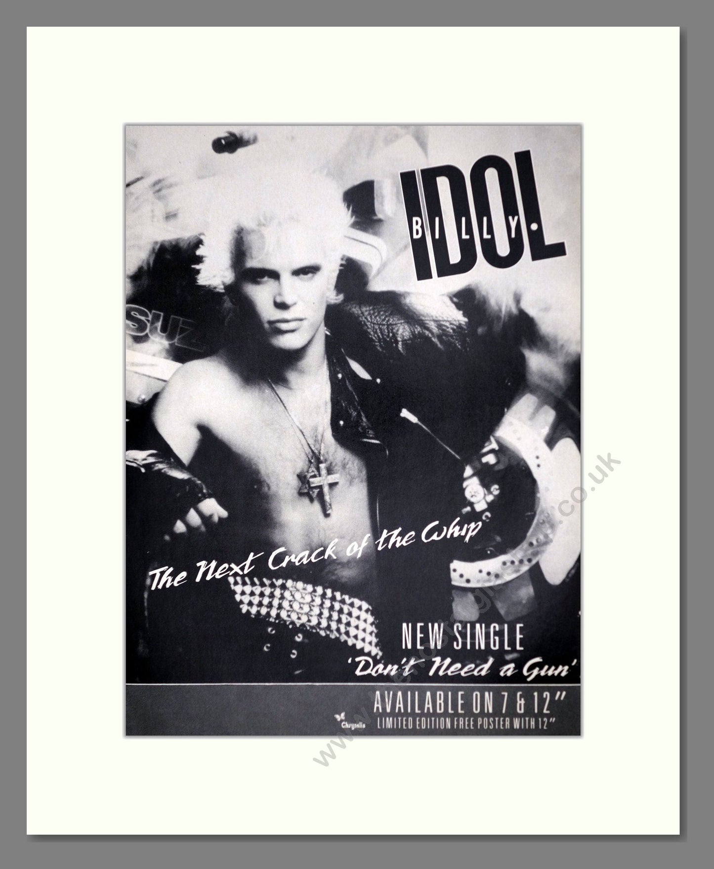 Billy Idol - The Next Crack Of The Whip. Vintage Advert. This is a classic original advert from 1987. Presented and supplied in a cream bevel cut mount with backing card and clear bag. Ready to fit in a 14 x 11 inches frame. The mounted advert will be posted via courier and well packed - protected with a sheet of hardboard to keep it rigid. Any questions or enquiries, please get in touch, we are here to help! All our adverts, unless clearly stated are originals from the date shown. They make excellent pieces of wall art and stunning gifts. Many are rare and hard to find and once sold, may not be replaced. Remember you are buying a piece of history. Website watermark is not on original.