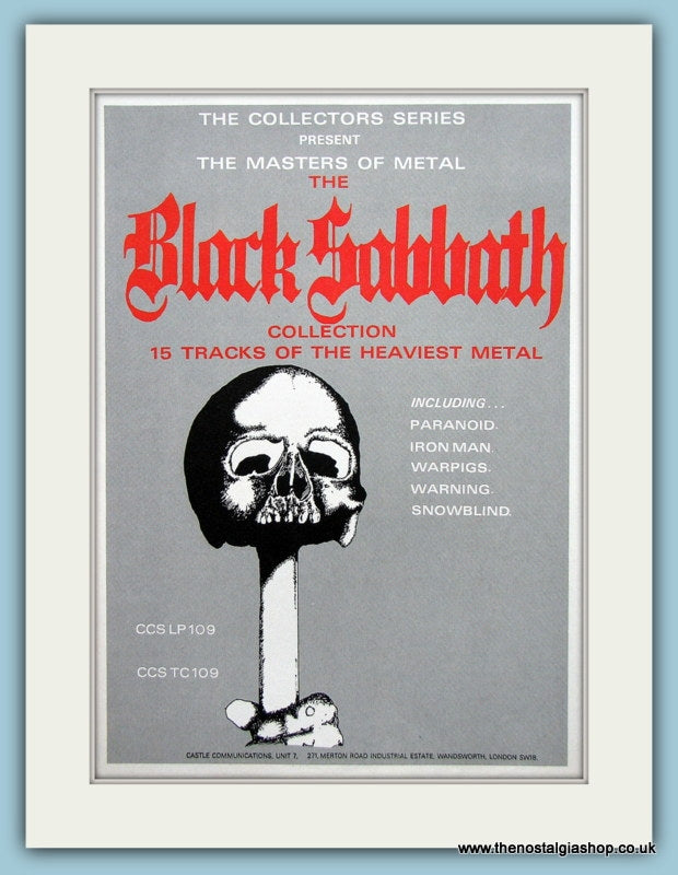 Black Sabbath. The collectors series. Classic original Music advert 1992. Presented in cream bevel cut mount with backing card and clear bag. Ready to fit in 14 x 11 inch frame. Want it framing? If so, buy this then go to Frames Available Catagory. Click to buy on the suitable frame and we will do the rest. All our adverts, unless clearly stated are Originals from the date shown. They make excellent pieces of wall art and stunning gifts. Many are rare and hard to find and once sold, may not be replaced. Remember you are buying a piece of history. Website watermark is not on original.