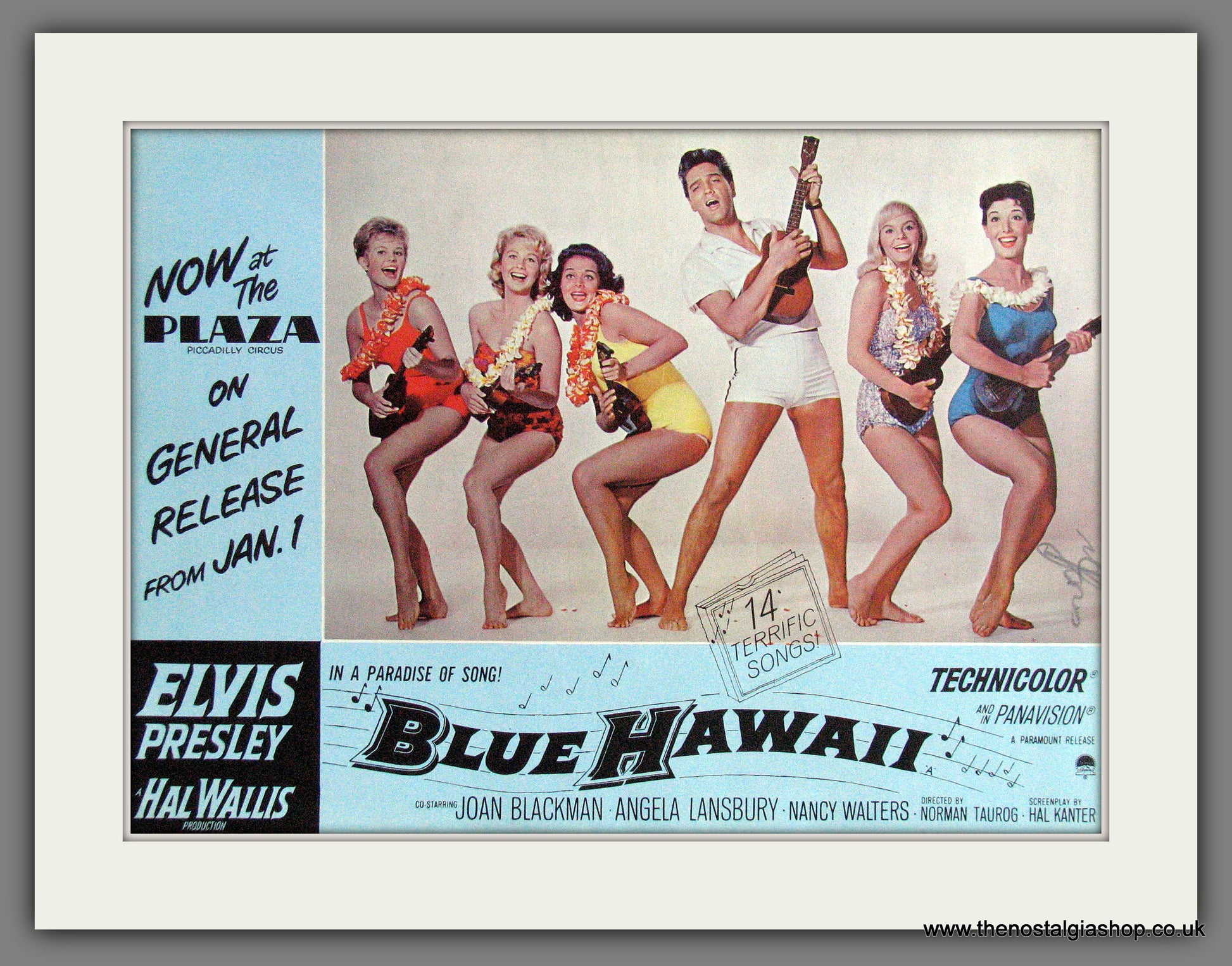 Blue Hawaii. Elvis Presley, Angela Lansbury, Joan Blackman. Vintage Advert. Classic Original advert 1962. Presented and Supplied in a cream bevel cut mount with backing card and display bag. Ready to fit in 14 x 11 inch frame. Want it framing? If so, buy this then go to Frames Available Category. Click to buy on the suitable frame and we will do the rest. All our adverts, unless clearly stated are Originals from the date shown. They make excellent pieces of wall art and stunning gifts. Many are rare and hard to find and once sold, may not be replaced. Remember you are buying a piece of history. Website watermark is not on original.