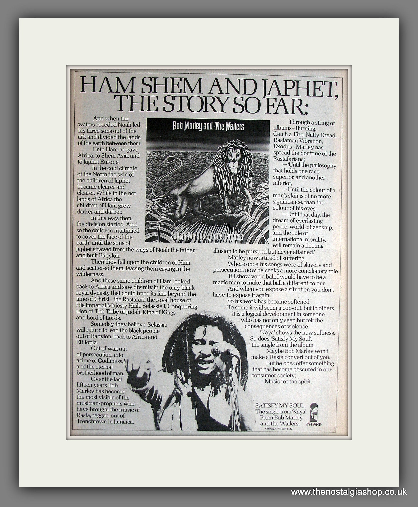 Bob Marley And The Wailers, Satisfy My Soul. Vintage Advert 1978 (ref AD14078)