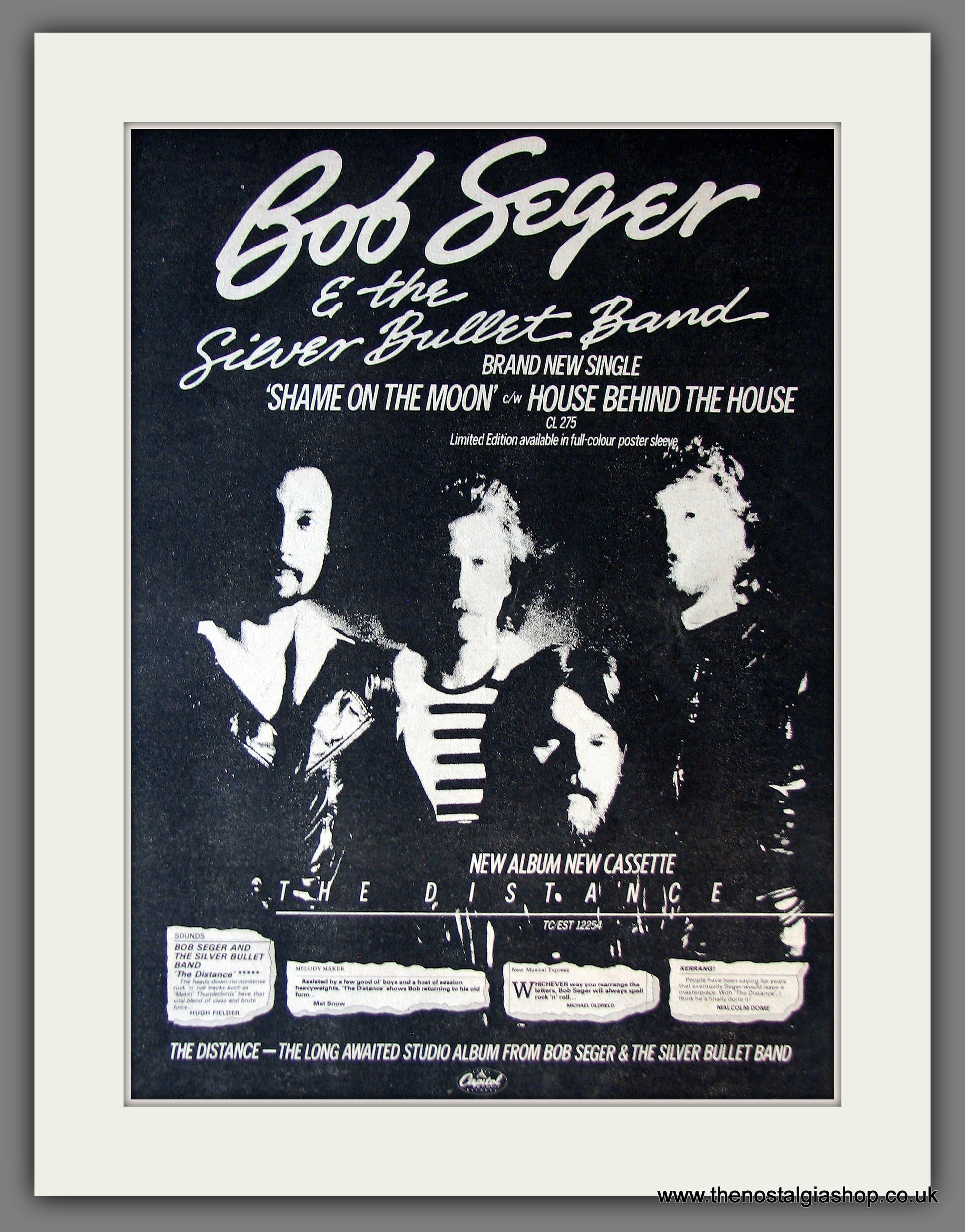 Bob Seger, The Distance. This is a large classic Original Vintage Advert 1983. Presented and Supplied in a cream, bevel cut mount with backing card and clear bag. Ready to fit in 20 x 16 inch frame. The mounted advert will be posted via courier and well packed - protected with a sheet of hardboard to keep it rigid. Any questions or inquiries, please get in touch, we are here to help! All our adverts, unless clearly stated are Originals from the date shown. They make excellent pieces of wall art and stunning gifts. Many are rare and hard to find and once sold, may not be replaced. Remember you are buying a piece of history. Website watermark is not on original.