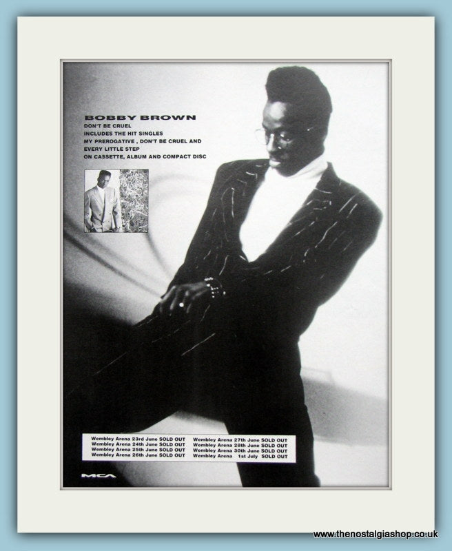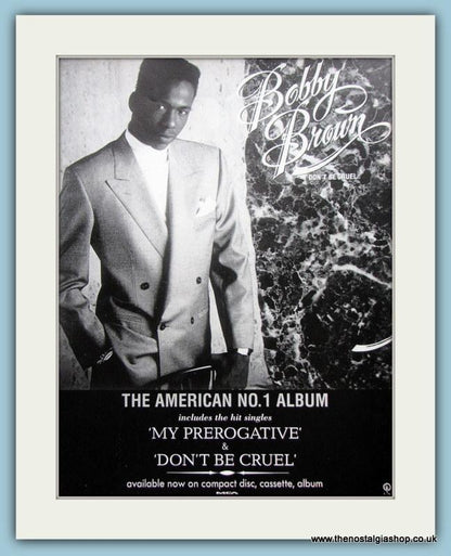 Bobby Brown. The American No 1 Album. 2 x Classic original adverts 1988. (price is for both adverts) Each is presented in cream bevel cut mount with backing card. Ready to fit in 14 x 11 inch frame. Want them framing? If so, buy these then go to Frames Available Category. Click to buy on the suitable frame(s) and we will do the rest. All our adverts, unless clearly stated are Originals from the date shown. They make excellent pieces of wall art and stunning gifts. Many are rare and hard to find and once sold, may not be replaced. Remember you are buying a piece of history. Website watermark is not on original. Soul Music.