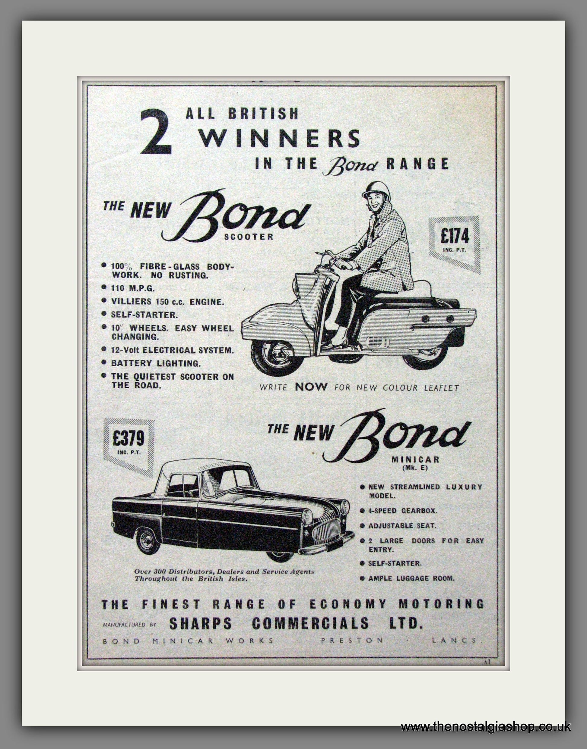 Bond Scooters. Original Advert 1958 (ref AD54172)