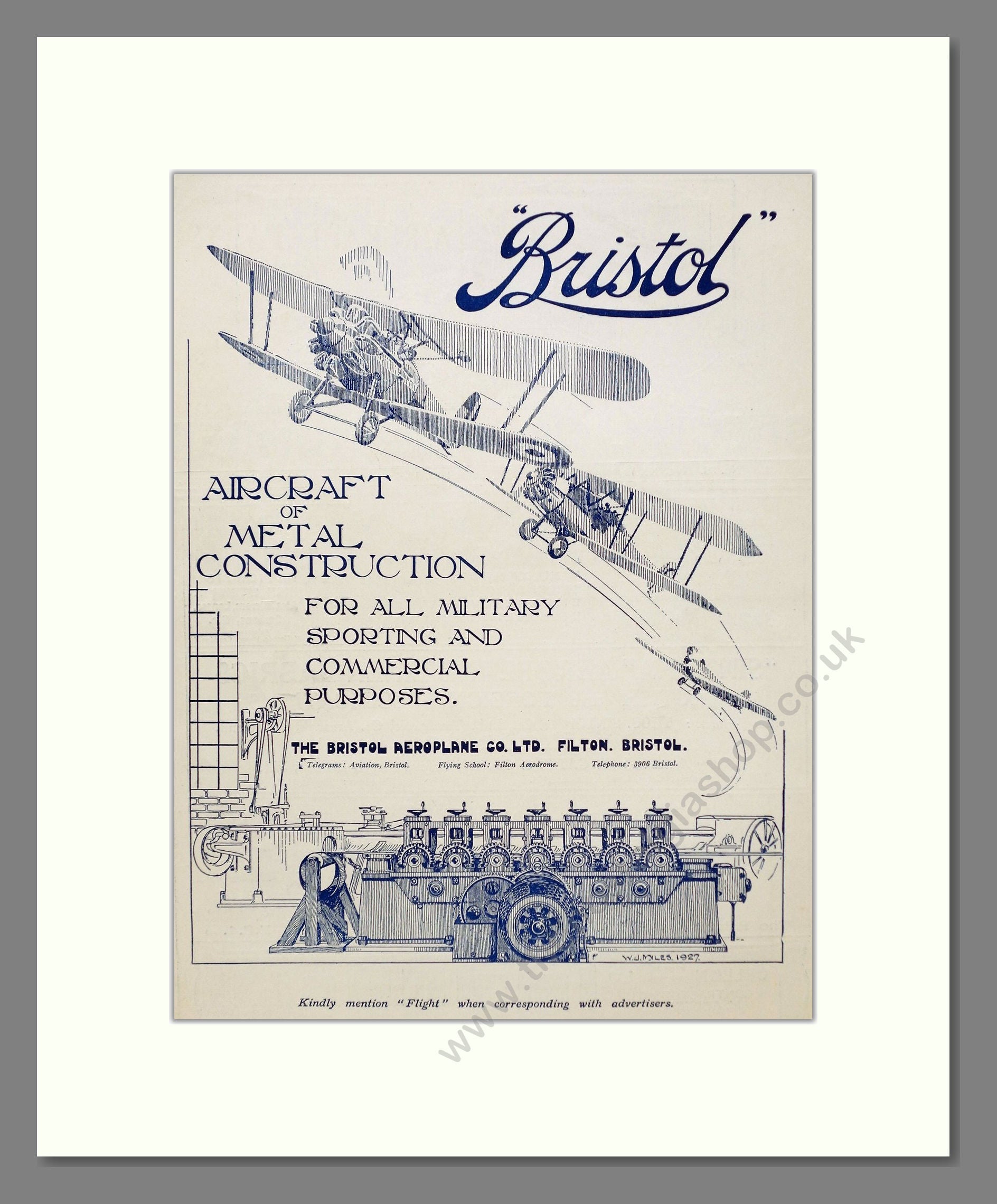 Bristol - Aircraft Of Metal Construction. Vintage Advert. This is a classic original advert from 1928. Presented and supplied in a cream bevel cut mount with backing card and clear bag. Ready to fit in a 14 x 11 inches frame. The mounted advert will be posted via courier and well packed - protected with a sheet of hardboard to keep it rigid. Any questions or enquiries, please get in touch, we are here to help! All our adverts, unless clearly stated are originals from the date shown. They make excellent pieces of wall art and stunning gifts. Many are rare and hard to find and once sold, may not be replaced. Remember you are buying a piece of history. Website watermark is not on original.