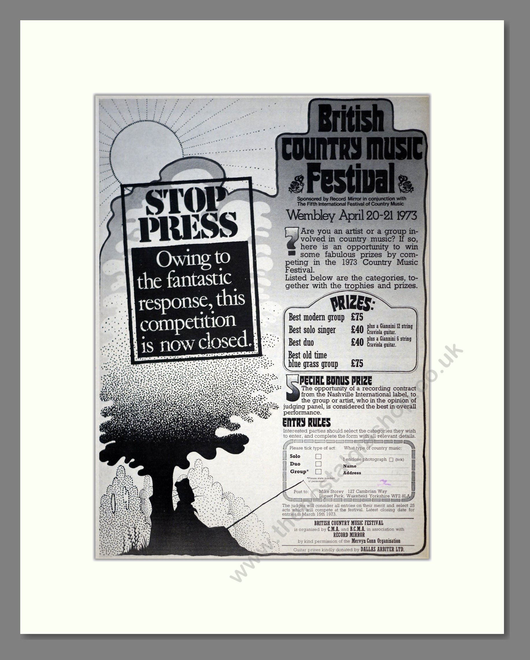 British Country Music Festival - Wembley Competition. Vintage Advert 1973 (ref AD19546)