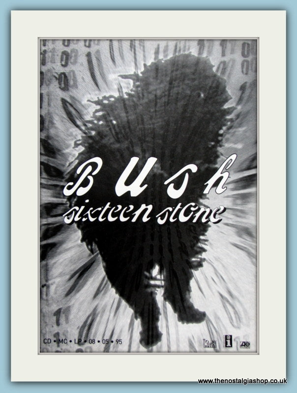 Bush. Sixteen Stone. Classic original advert 1993. It is presented in cream bevel cut mount with backing card. Ready to fit in 14 x 11 inch frame. Want it framing? If so, buy these then go to Frames Available Category. Click to buy on the suitable frame and we will do the rest. All our adverts, unless clearly stated are Originals from the date shown. They make excellent pieces of wall art and stunning gifts. Many are rare and hard to find and once sold, may not be replaced. Remember you are buying a piece of history. Website watermark is not on original.