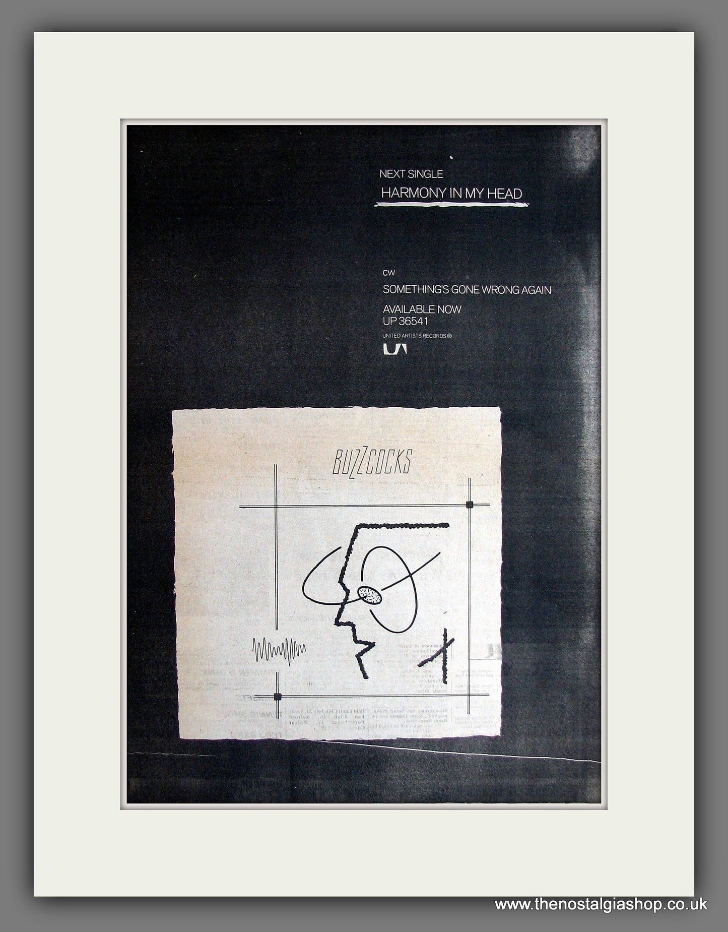 Buzzcocks Harmony In My Head. Vintage Advert. This is a large classic Original advert 1979. Presented and Supplied in a cream bevel cut mount with backing card and clear bag. Ready to fit in 20 x 16 inch frame. The mounted advert will be posted via courier and well packed - protected with a sheet of hardboard to keep it rigid. Any questions or inquiries, please get in touch, we are here to help! All our adverts, unless clearly stated are Originals from the date shown. They make excellent pieces of wall art and stunning gifts. Many are rare and hard to find and once sold, may not be replaced. Remember you are buying a piece of history.