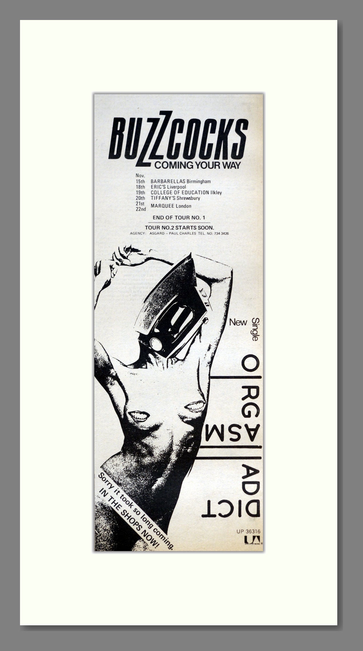 Buzzcocks - Orgasm Addict (UK Tour). Vintage Advert 1977 (ref AD200866)