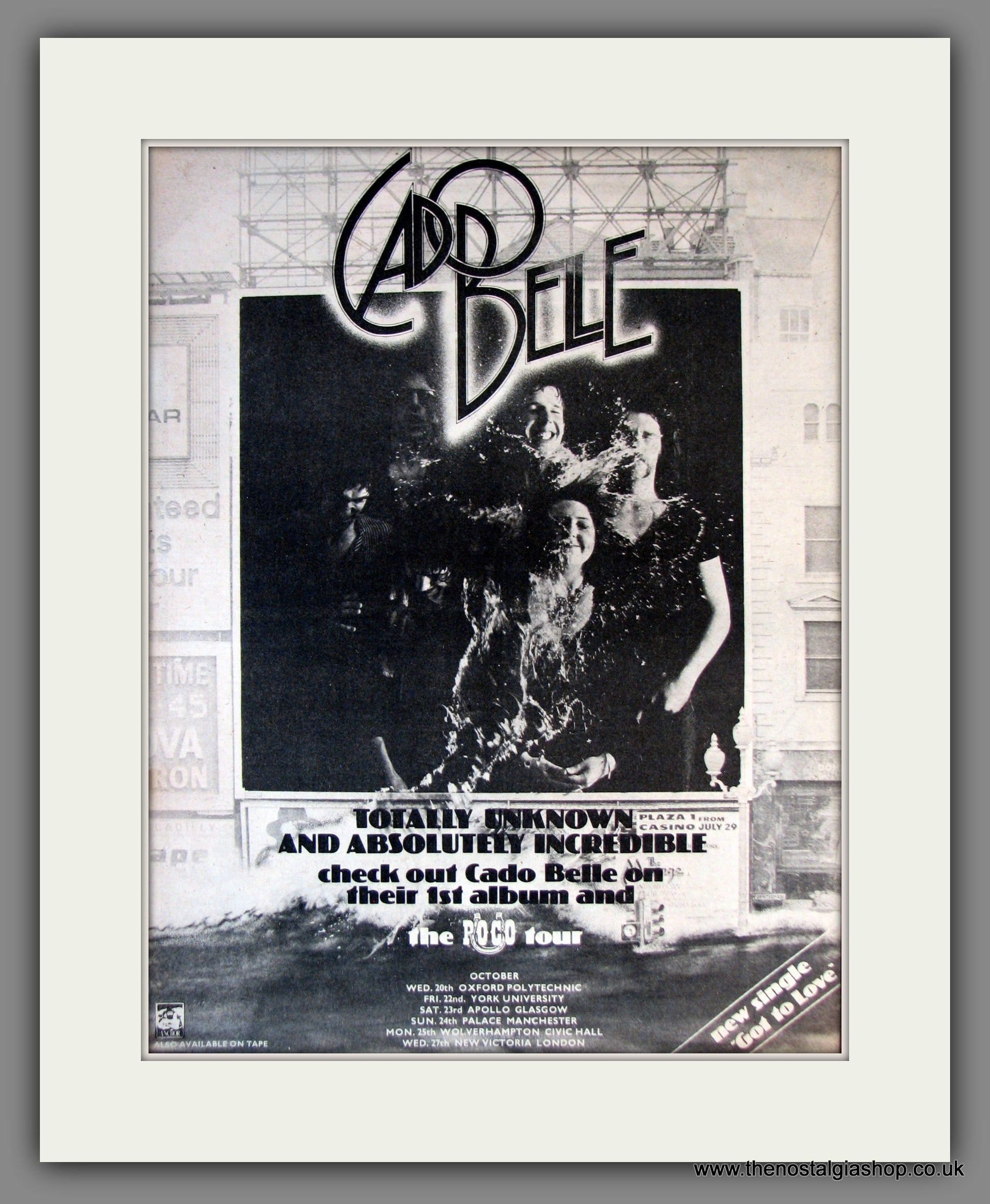 Cado Belle UK Roco Tour. Original Advert 1976 (ref AD11811). Presented and supplied in a cream bevel cut mount with backing card and clear bag. Ready to fit in a 20x16 inch frame. The mounted advert will be posted via courier and well packed - protected with a sheet of hardboard to keep it rigid. Any questions or enquiries, please get in touch, we are here to help! All our adverts, unless clearly stated are originals from the date shown. They make excellent pieces of wall art and stunning gifts. Many are rare and hard to find and once sold, may not be replaced. Remember you are buying a piece of history. Website watermark is not on original.