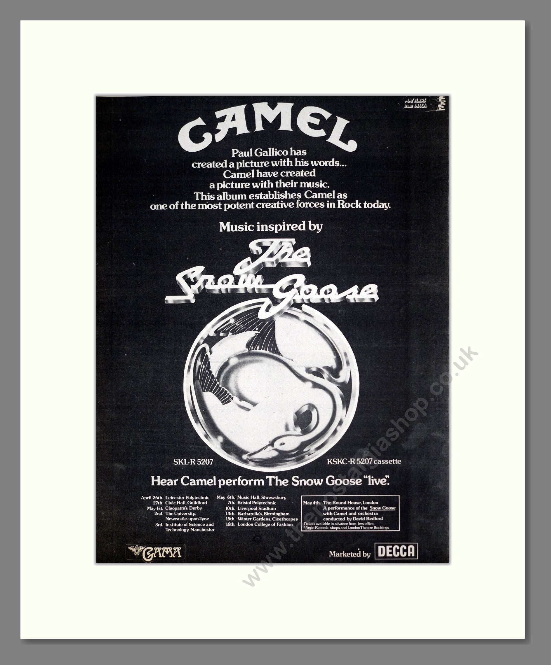 Camel - The Snow Goose. Vintage Advert 1975 (ref AD18629)