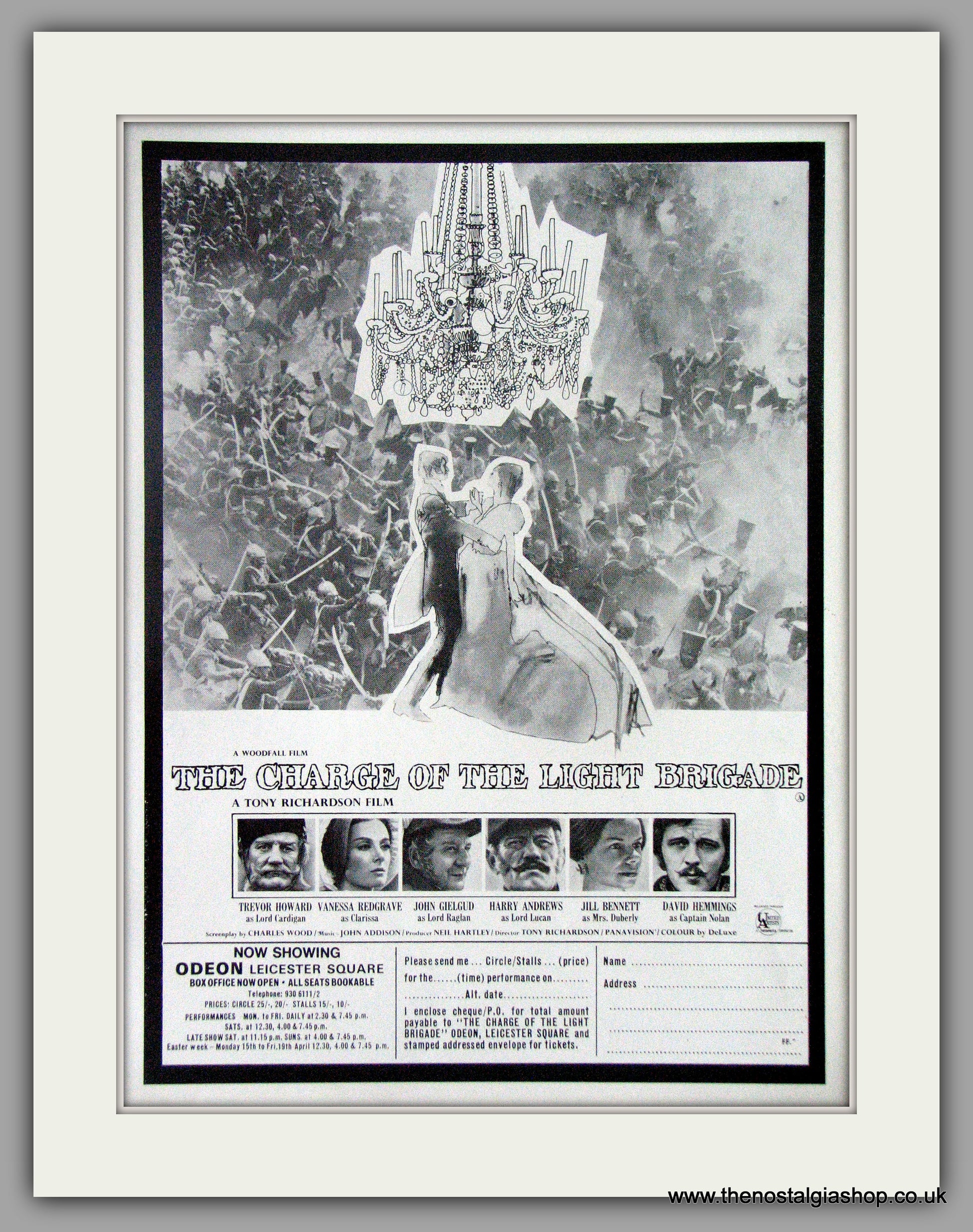 The Charge Of The Light Brigade. Original Advert 1968. Presented in creme bevel cut mount with backing board. Made to fit straight into 14 x 11 inch frame.The perfect gift.- These adverts are all taken from Original publications of the dates stated. They are NOT modern reprints. Many are difficult to get hold of, some are very rare and once sold may not be replaced, Remember, you are buying a piece of historic nostalgia. Lots more adverts available. Please contact us if you don't see the advert you want. Shipping weight 0.16 kg.