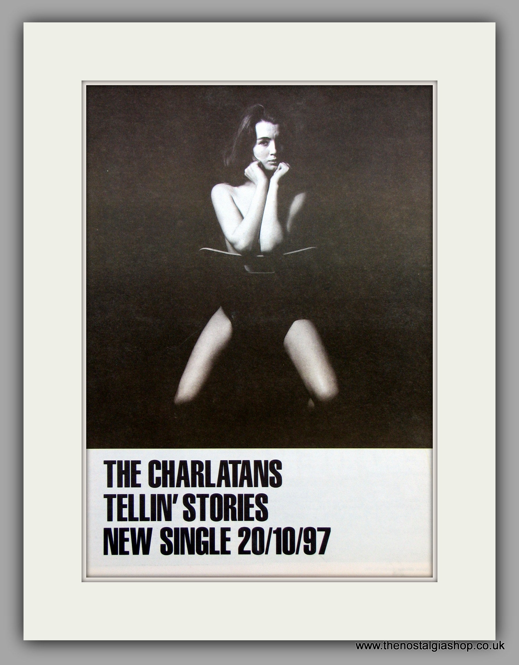 Charlatans (The) Tellin' Stories. Original Vintage Advert 1997 (ref AD10191). Presented and supplied in a cream bevel cut mount with backing card and clear bag. Ready to fit in a 20x16 inch frame. The mounted advert will be posted via courier and well packed - protected with a sheet of hardboard to keep it rigid. Any questions or enquiries, please get in touch, we are here to help! All our adverts, unless clearly stated are originals from the date shown. They make excellent pieces of wall art and stunning gifts. Many are rare and hard to find and once sold, may not be replaced. Remember you are buying a piece of history. Website watermark is not on original.