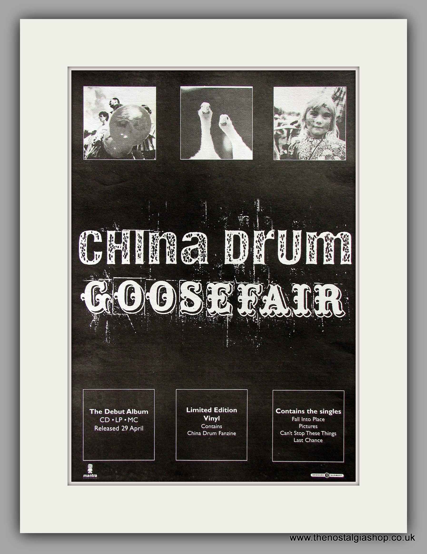 China Drum, Goosefair. Original Vintage Advert 1996 (ref AD10256). Presented and supplied in a cream bevel cut mount with backing card and clear bag. Ready to fit in a 20x16 inch frame. The mounted advert will be posted via courier and well packed - protected with a sheet of hardboard to keep it rigid. Any questions or enquiries, please get in touch, we are here to help! All our adverts, unless clearly stated are originals from the date shown. They make excellent pieces of wall art and stunning gifts. Many are rare and hard to find and once sold, may not be replaced. Remember you are buying a piece of history. Website watermark is not on original.