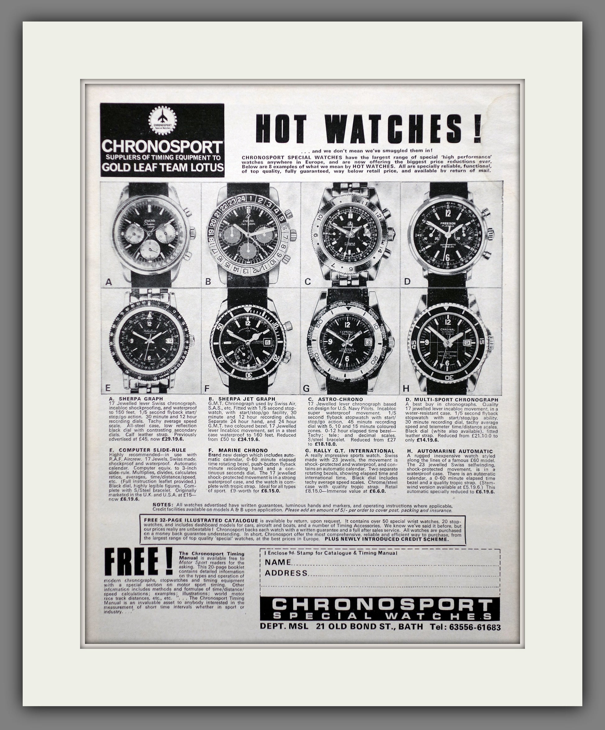 Chronosport Watches. Original Advert 1968 (ref AD60685)