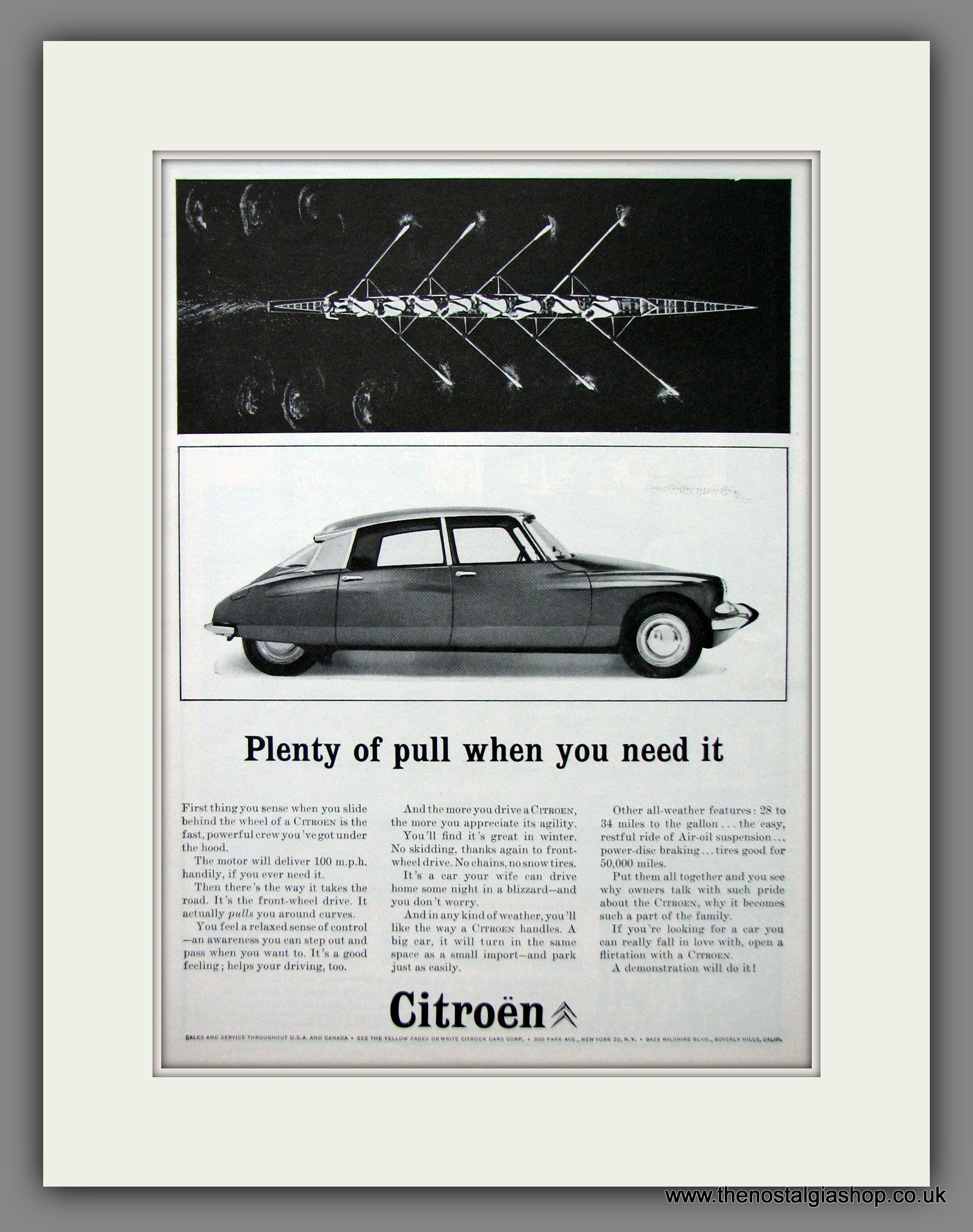 Citroen. Original American Advert 1963. Presented and Supplied in a cream bevel cut mount with backing card and clear bag. Ready to fit in 14 x 11 inch frame. Want it framing? If so, buy this then go to Frames Available Category. Click to buy on the suitable frame and we will do the rest. All our adverts, unless clearly stated are Originals from the date shown They make excellent pieces of wall art and stunning gifts. Many are rare and hard to find and once sold, may not be replaced. Remember you are buying a piece of history. Website watermark is not on original.