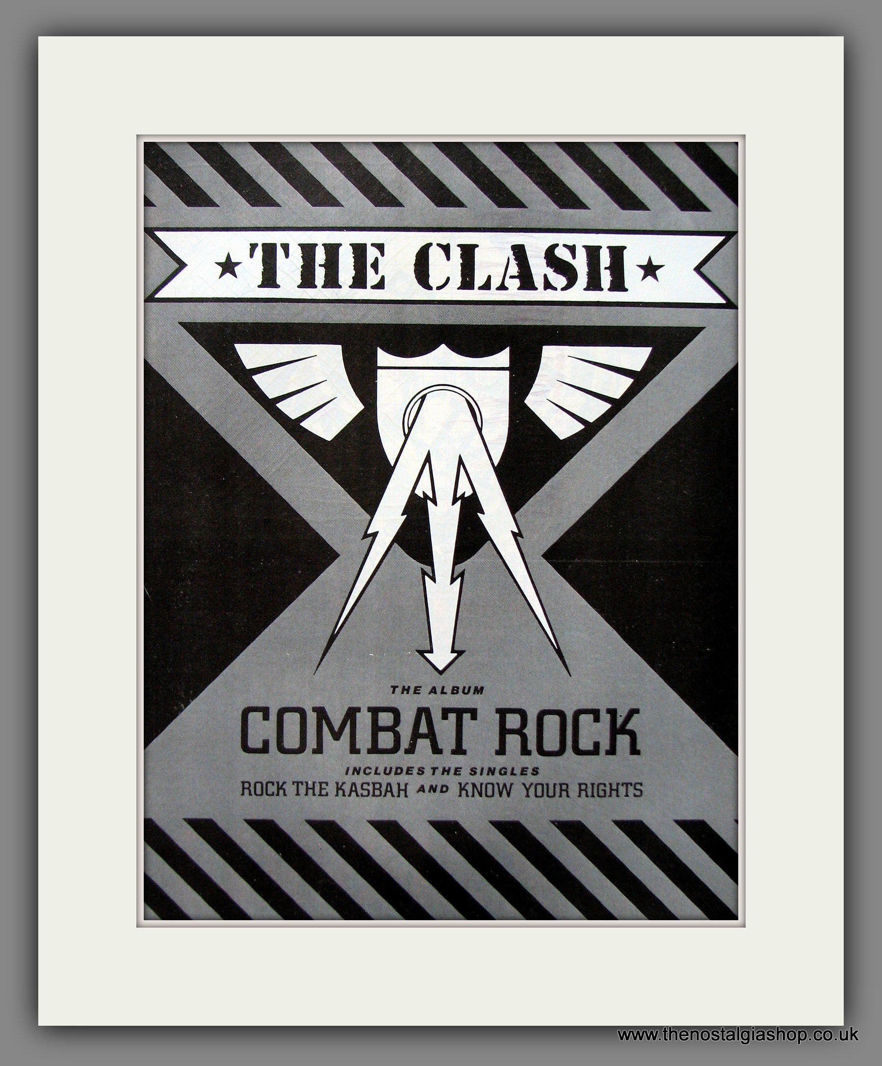 The Clash. Combat Rock. Classic Original Advert 1982. It is presented and Supplied in a cream bevel cut mount with backing card and display bag. Ready to fit in 14 x 11 inch frame. Want it framing? If so, buy these then go to Frames Available Category. Click to buy on the suitable frame and we will do the rest. All our adverts, unless clearly stated are Originals from the date shown. They make excellent pieces of wall art and stunning gifts. Many are rare and hard to find and once sold, may not be replaced. Remember you are buying a piece of history. Website watermark is not on original.