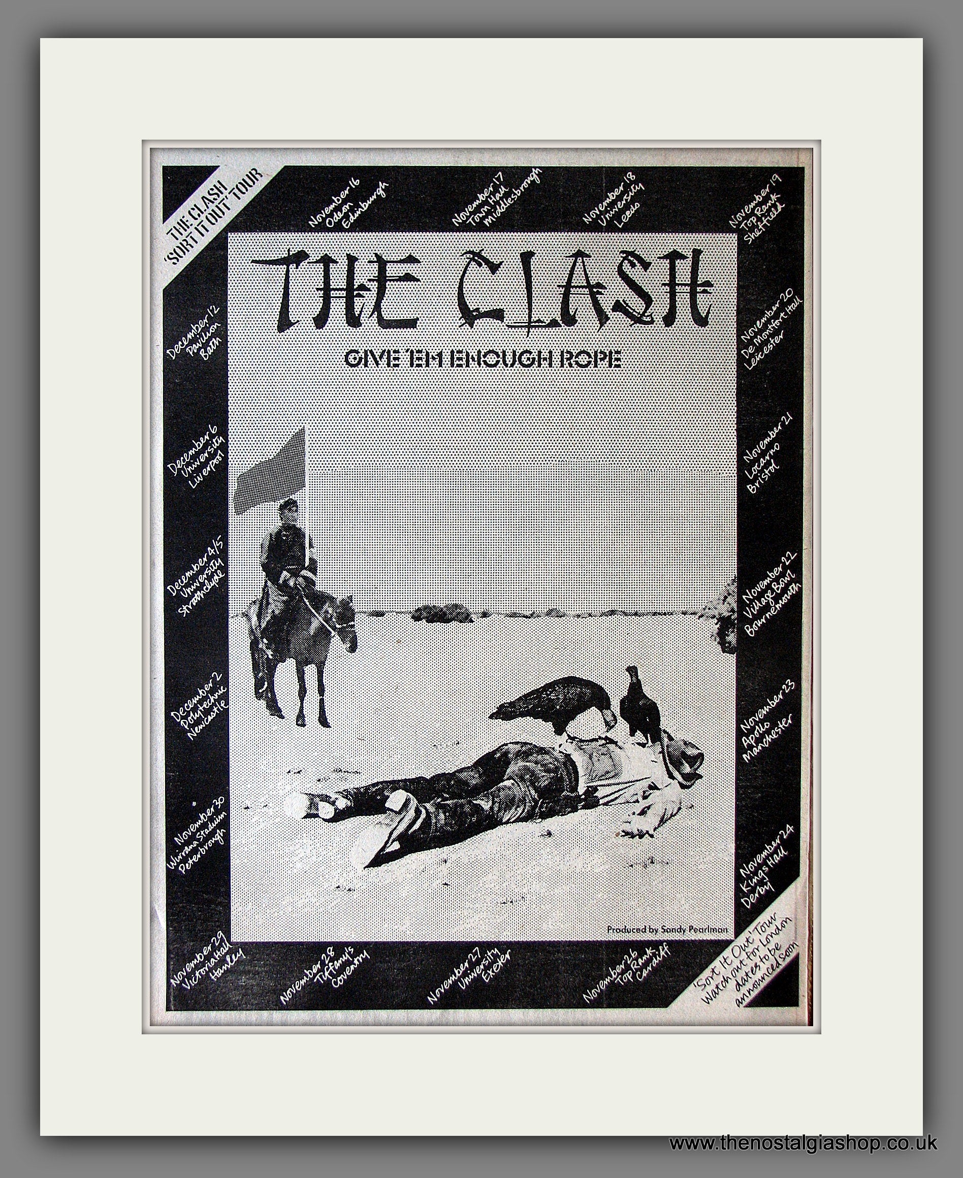 The Clash, Give 'Em Enough Rope. This is a large classic Original Vintage Advert 1978. Presented and Supplied in a cream, bevel cut mount with backing card and clear bag. Ready to fit in 20 x 16 inch frame. The mounted advert will be posted via courier and well packed - protected with a sheet of hardboard to keep it rigid. Any questions or inquiries, please get in touch, we are here to help! All our adverts, unless clearly stated are Originals from the date shown. They make excellent pieces of wall art and stunning gifts. Many are rare and hard to find and once sold, may not be replaced. Remember you are buying a piece of history. Website watermark is not on original.