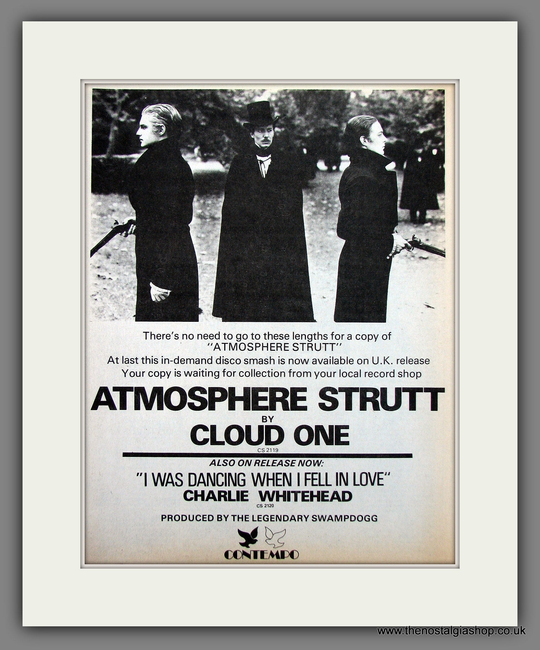 Cloud One. Atmosphere Strutt. Classic Original Advert 1977. Presented in cream bevel cut mount with backing card and clear bag. Ready to fit in 14 x 11 Inch frame. Want it framing? If so, buy this then go to Frames Available Category. Click to buy on the suitable frame and we will do the rest. All our adverts, unless clearly stated are Originals from the date shown. They make excellent pieces of wall art and stunning gifts. Many are rare and hard to find and once sold, may not be replaced. Remember you are buying a piece of history. Website watermark is not on original. Motown, Blues, Soul, Funk, Disco.