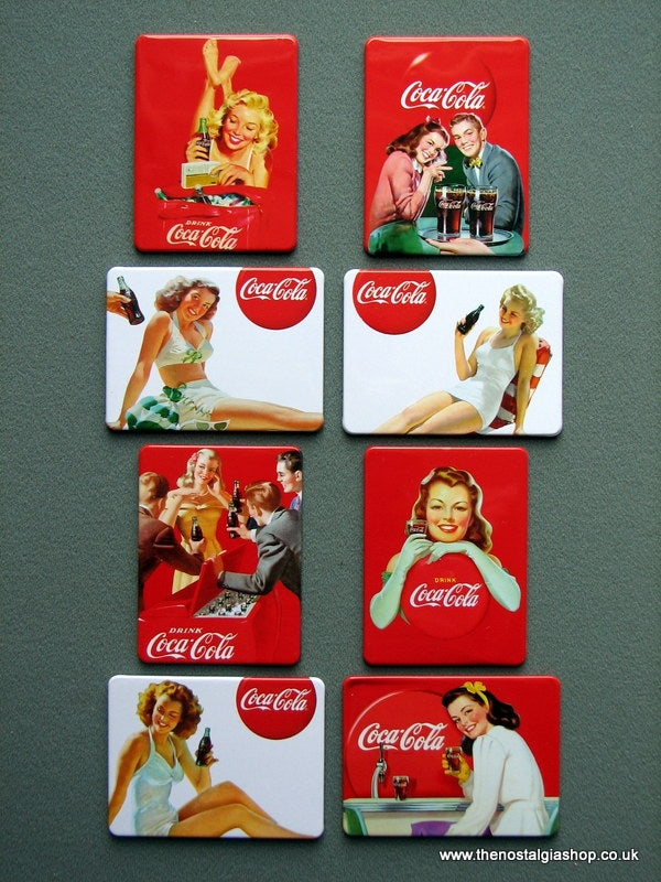 Coca - Cola Fridge Magnets x 8. All different and unused, size approx 3.5 by 2.5 inches. Item will be well packed.