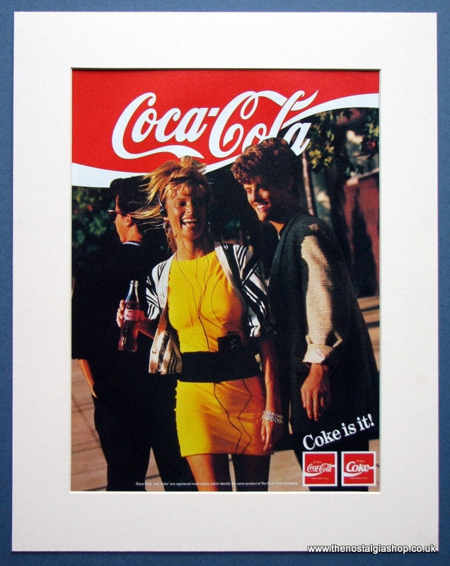 Coca Cola. Coke. Set Of 2 Coke is it!. Classic original adverts 1988 . Presented in cream bevel cut mount with backing card and clear bag. Each is ready to fit in 14 x 11 inch frame. Want them framing? If so, buy this then go to Frames Available Category. Click to buy on the suitable frame(s) and we will do the rest. All our adverts, unless clearly stated are Originals from the date shown They make excellent pieces of wall art and stunning gifts. Many are rare and hard to find and once sold, may not be replaced. Remember you are buying a piece of history. Website watermark is not on original.