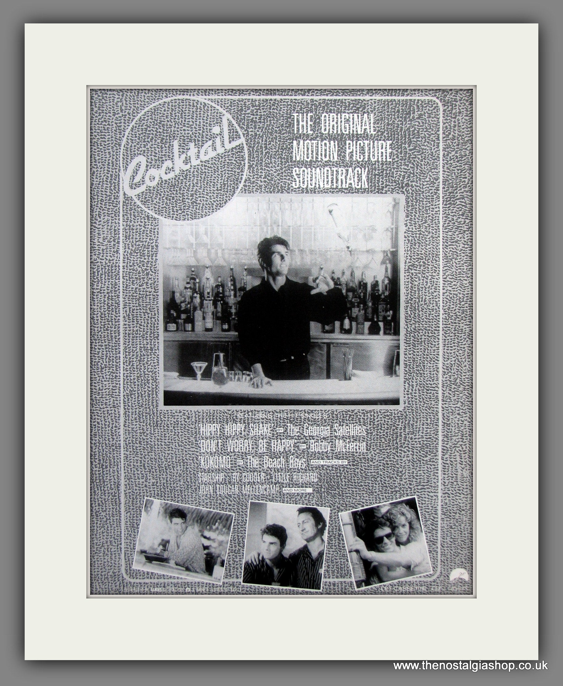 Cocktail, Soundtracks for film. 1989 Classic Original advert. Presented and Supplied in a cream bevel cut mount with backing card and clear bag. Ready to fit in 14 x 11 inch frame. Want it framing? If so, buy this then go to Frames Available Category. Click to buy on the suitable frame and we will do the rest. All our adverts, unless clearly stated are Originals from the date shown. They make excellent pieces of wall art and stunning gifts. Many are rare and hard to find and once sold, may not be replaced. Remember you are buying a piece of history. Website watermark is not on original.