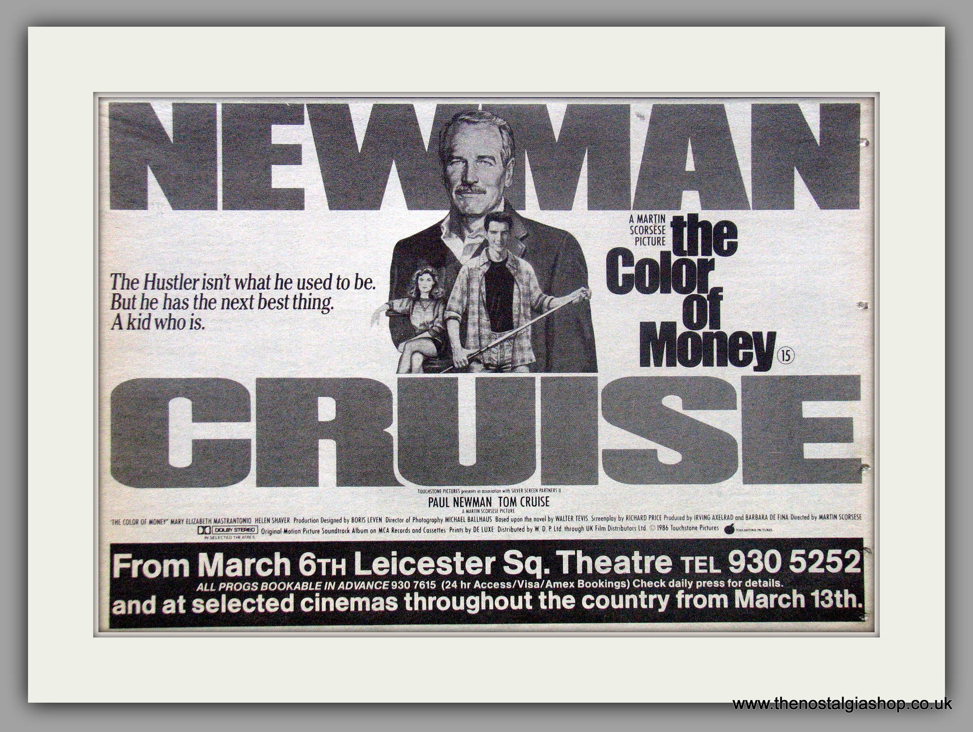 The Colour Of Money. Paul Newman, Tom Cruise. Original Advert 1987. Presented in cream bevel cut mount with backing board. Made to fit straight into 14 x 11 inch frame. The perfect gift.- These adverts are all taken from Original publications of the dates stated. They are NOT modern reprints. Many are difficult to get hold of, some are very rare and once sold may not be replaced, Remember, you are buying a piece of historic nostalgia. Lots more adverts available. Please contact us if you don't see the advert you want. Shipping weight 0.16 kg.