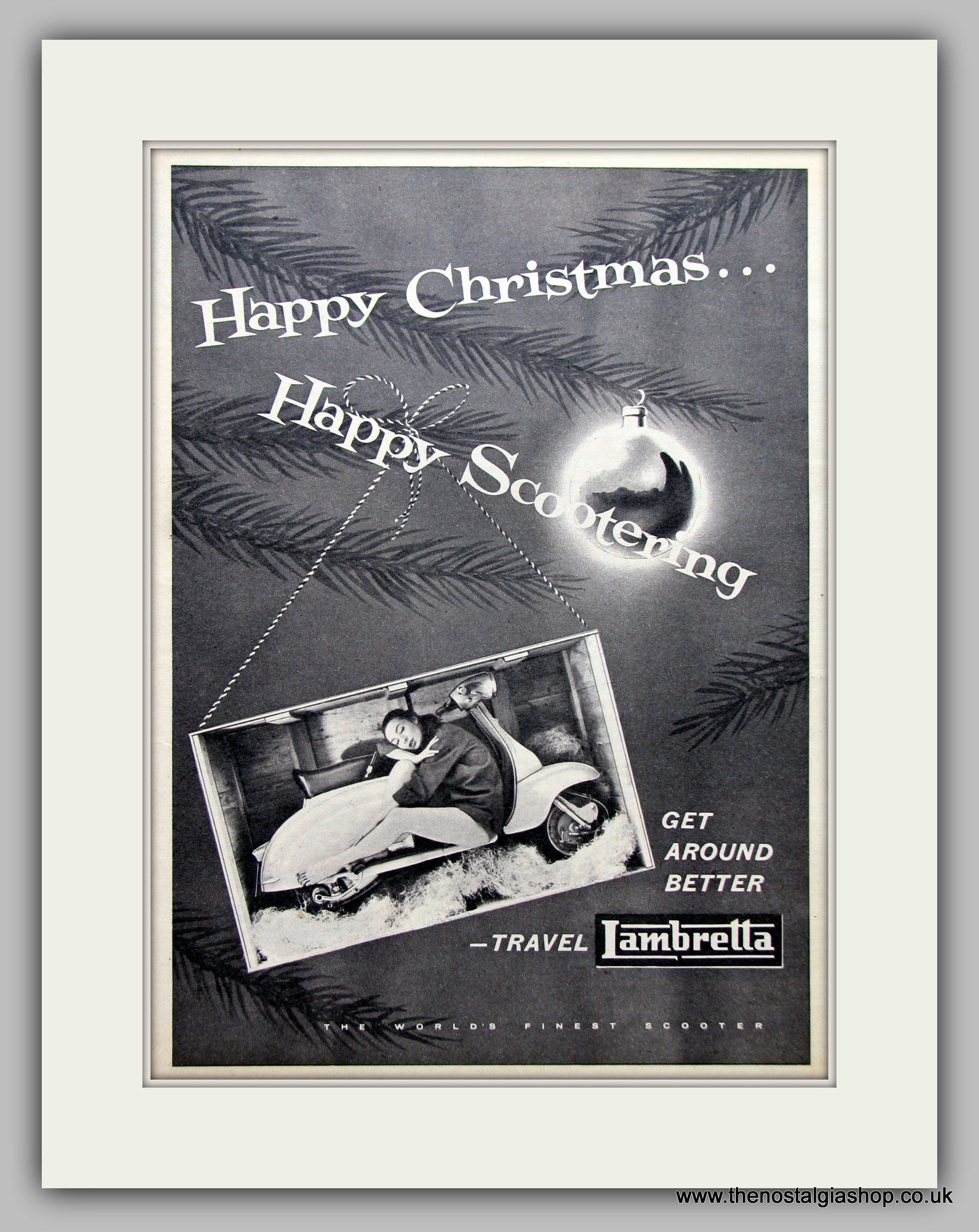 Lambretta Scooter. Happy scootering. Vintage Advert. Classic Original Scooter Advert 1959. Presented in cream bevel cut mount with backing card and clear bag. Ready to fit in 14 x 11 inch frame. Want it framing? If so, buy this then go to Frames Available Category. Click to buy on the suitable frame and we will do the rest. All our adverts, unless clearly stated are Originals from the date shown They make excellent pieces of wall art and stunning gifts. Many are rare and hard to find and once sold, may not be replaced. Remember you are buying a piece of history. Website watermark is not on original.
