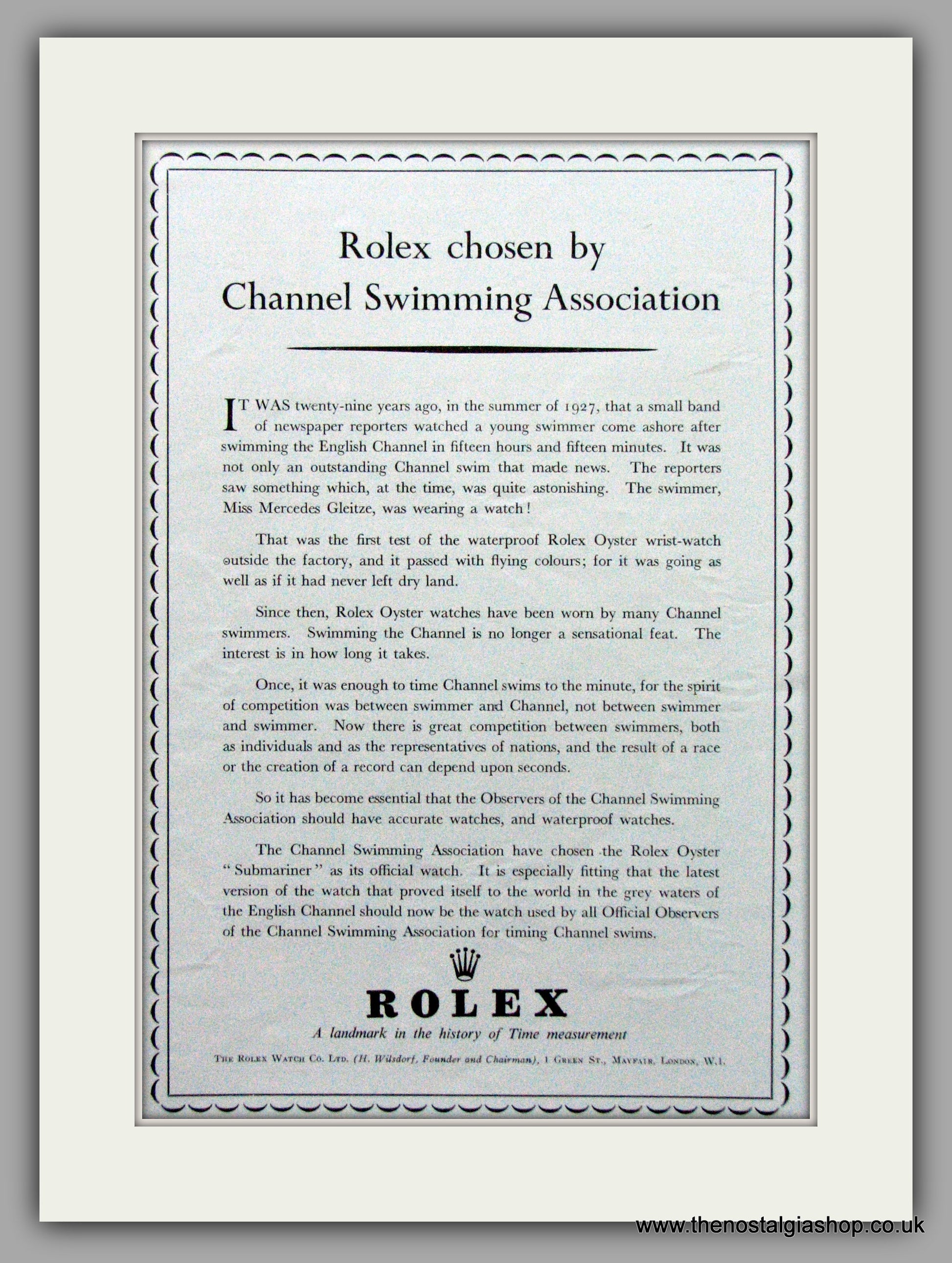 Rolex Waterproof Oyster Watches Channel Swimming Original Advert 1956 (ref AD7007)