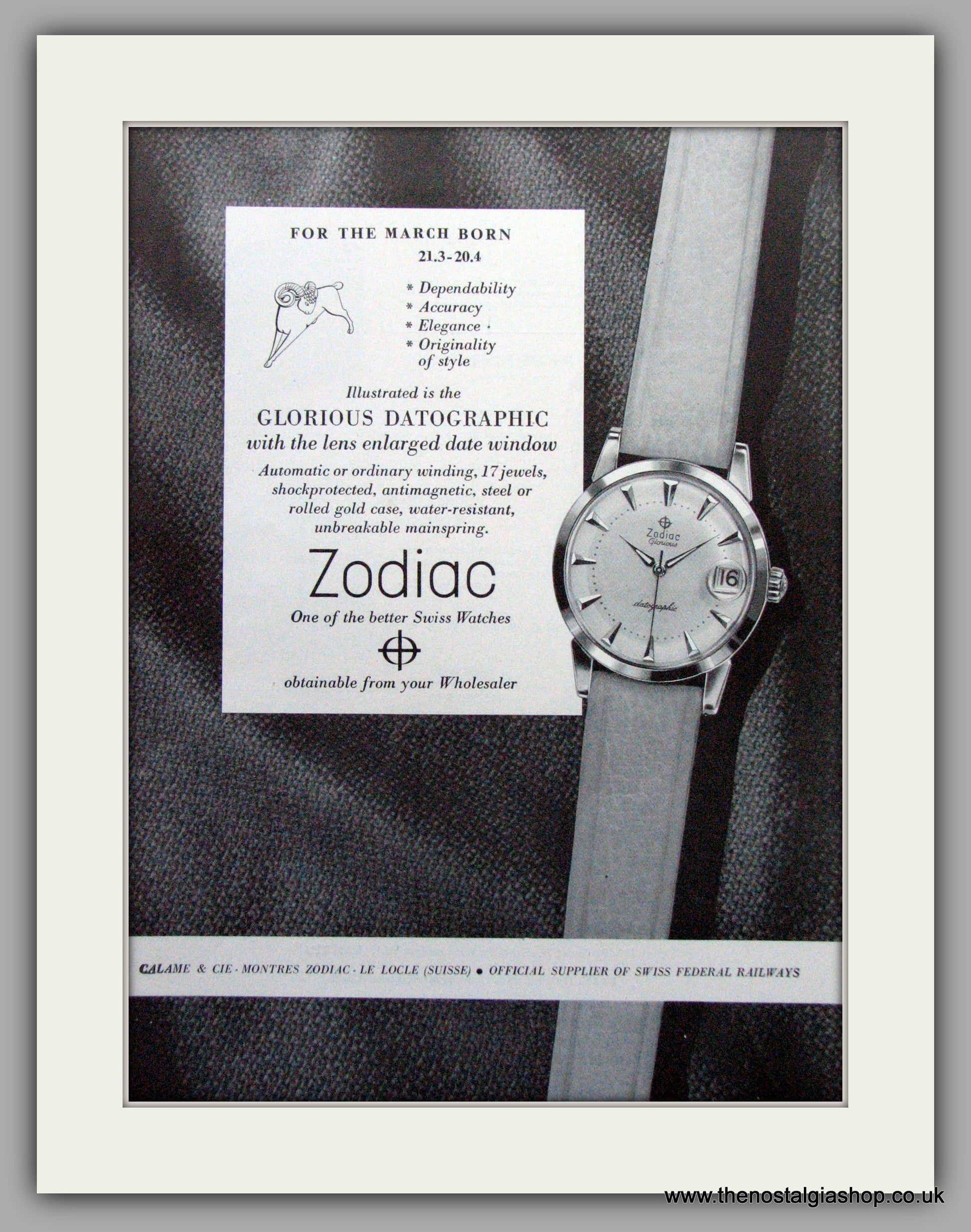Zodiac March Born Watches Original Advert 1957 (ref AD6994)