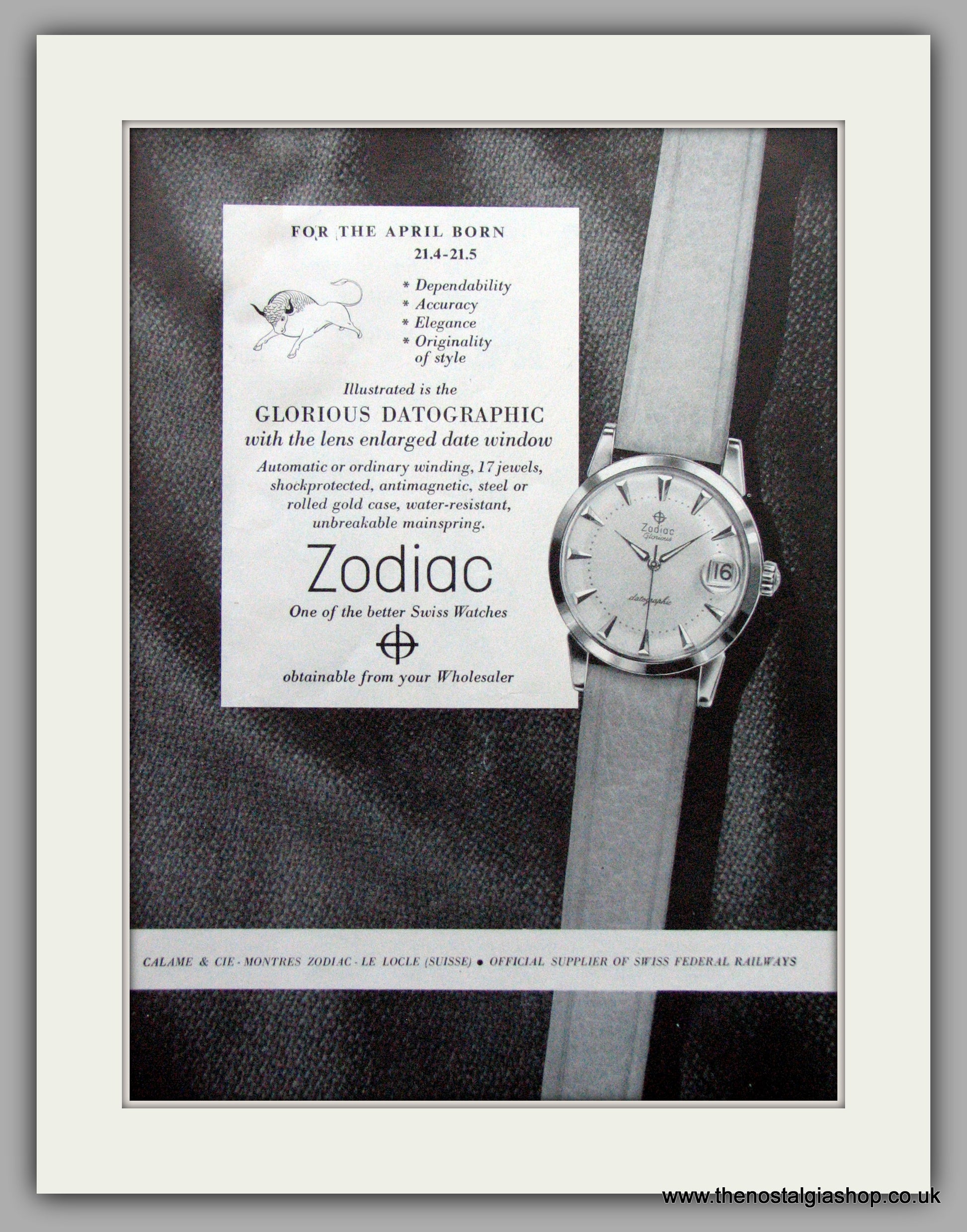 Zodiac April Born Watches Original Advert 1957 (ref AD6995)