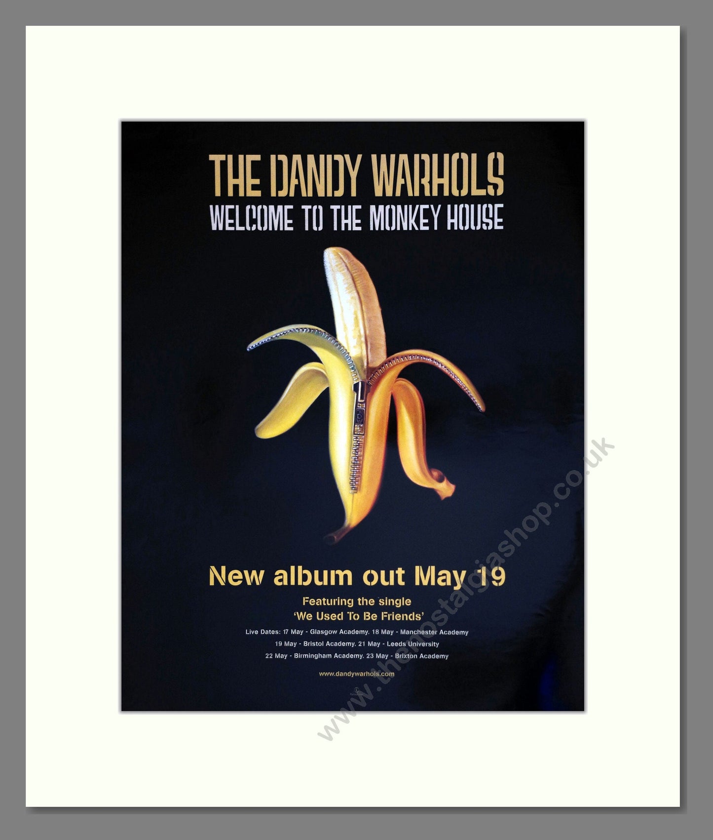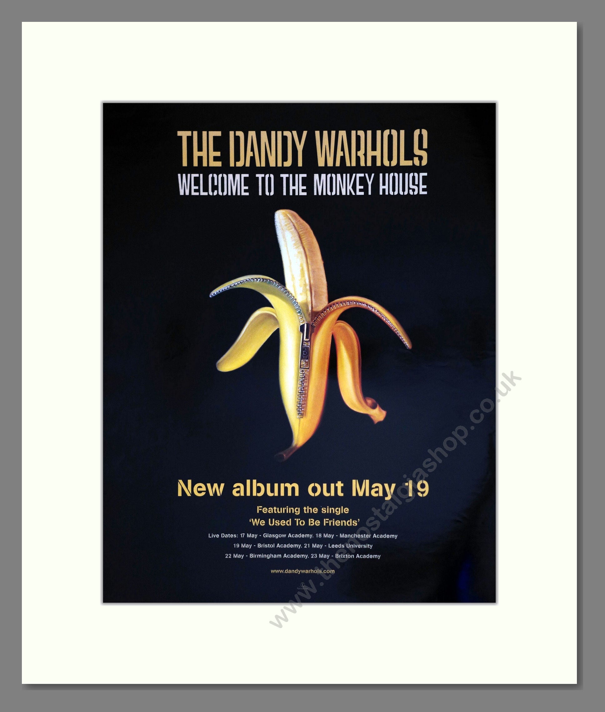 Dandy Warhols - Welcome To The Monkey House. Vintage Advert. This is a large classic original advert from 2003. Presented and supplied in a cream bevel cut mount with backing card and clear bag. Ready to fit in a 18 x 14 inches frame. The mounted advert will be posted via courier and well packed - protected with a sheet of hardboard to keep it rigid. Any questions or enquiries, please get in touch, we are here to help! All our adverts, unless clearly stated are originals from the date shown. They make excellent pieces of wall art and stunning gifts. Many are rare and hard to find and once sold, may not be replaced. Remember you are buying a piece of history. Website watermark is not on original.