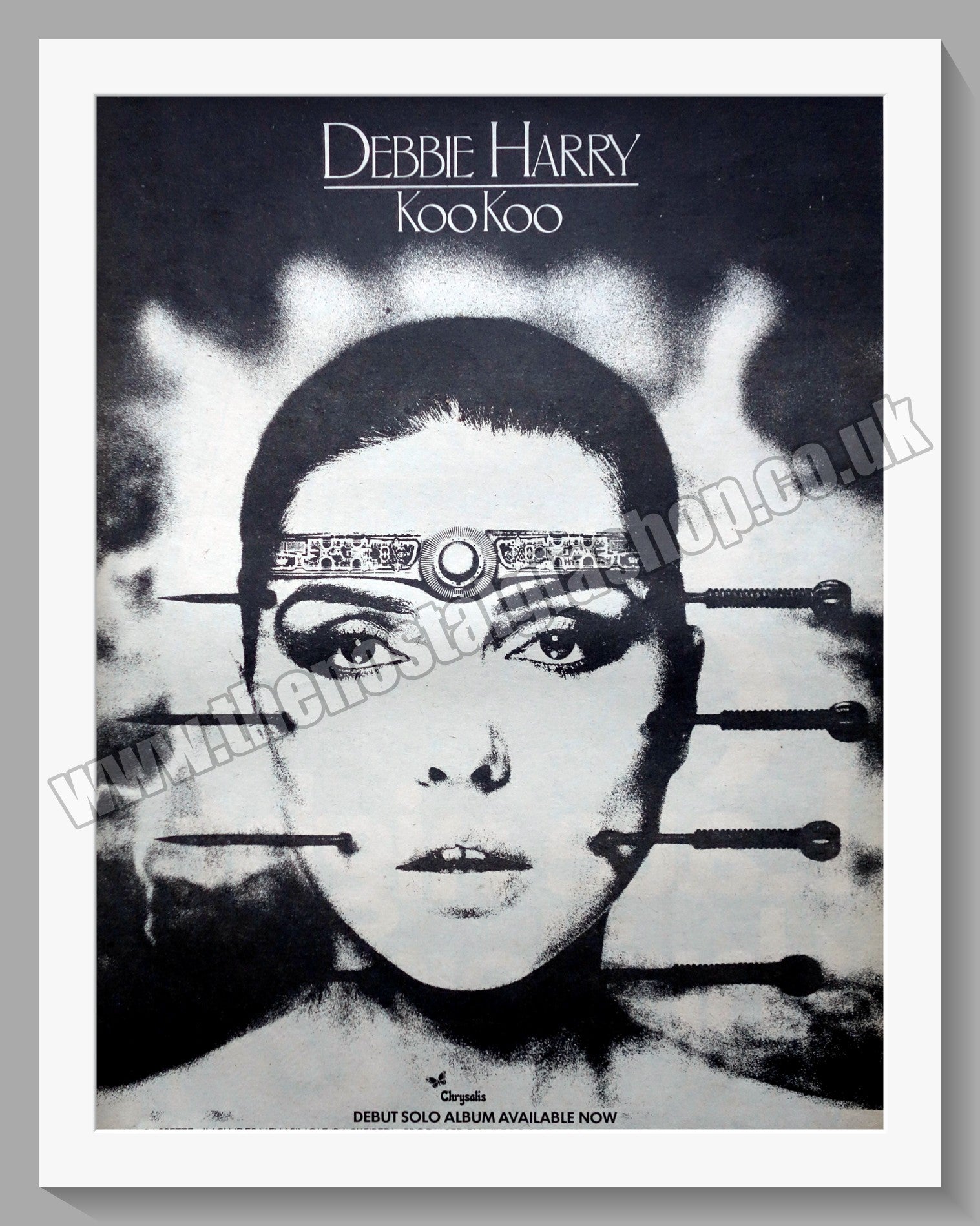 Debbie Harry Koo Koo. Large original advert 1981. Presented and Supplied in cream bevel cut mount with backing card and clear bag. Ready to fit in 20 x 16 inch frame. All our adverts, unless clearly stated are Originals from the date shown. They make excellent pieces of wall art and stunning gifts. Many are rare and hard to find and once sold, may not be replaced. Remember you are buying a piece of history. Website watermark is not on original.