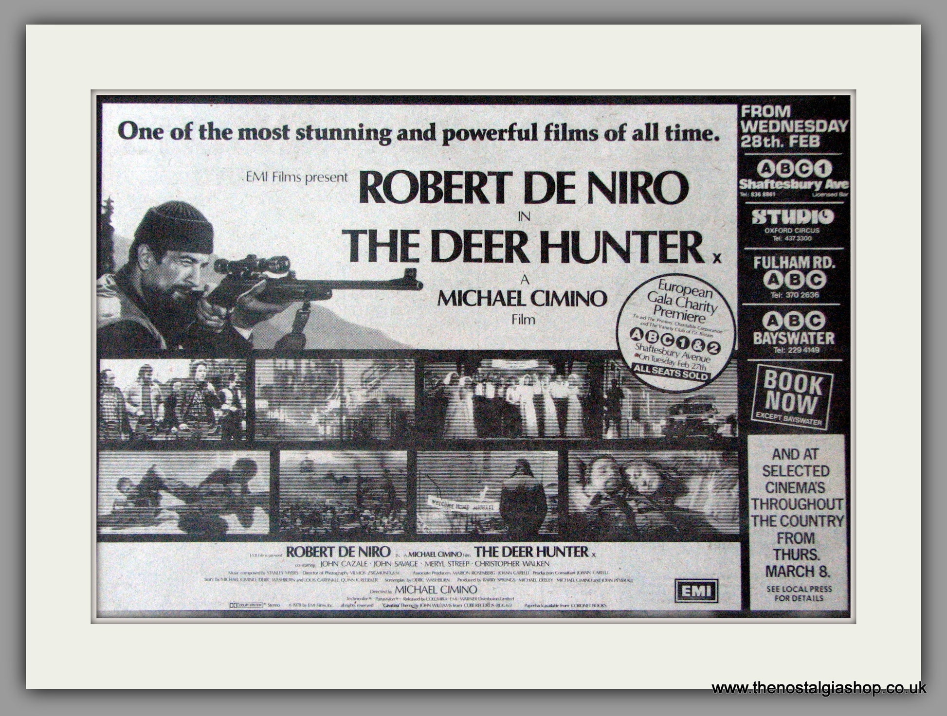 The Deer Hunter, Robert De Niro. Director - Michael Cimino. Vintage Advert. Classic original advert 1979. Presented in cream bevel cut mount with backing card and display bag. Ready to fit in 14 x 11 inch frame. Want it framing? If so, buy this then go to Frames Available Category. Click to buy on the suitable frame and we will do the rest. All our adverts, unless clearly stated are Originals from the date shown. They make excellent pieces of wall art and stunning gifts. Many are rare and hard to find and once sold, may not be replaced. Remember you are buying a piece of history. Website watermark is not on original.