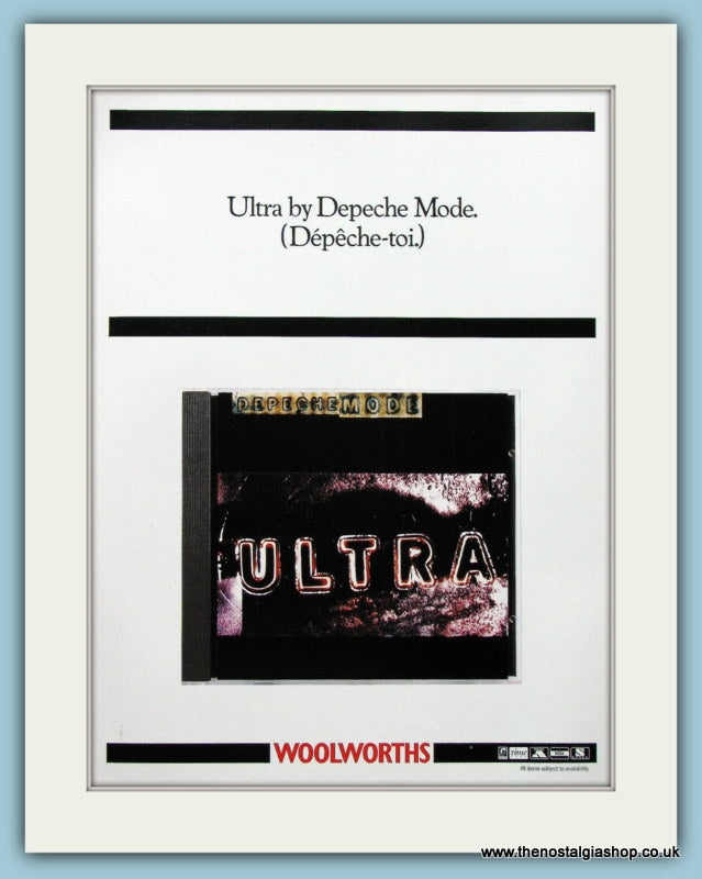 Depeche Mode. Ultra .Classic original advert 1997. Presented in cream bevel cut mount with backing card and clear bag. Ready to fit in 14 x 11 inch frame. Want it framing? If so, buy this then go to Frames Available Category. Click to buy on the suitable frame and we will do the rest. All our adverts, unless clearly stated are Originals from the date shown They make excellent pieces of wall art and stunning gifts. Many are rare and hard to find and once sold, may not be replaced. Remember you are buying a piece of history. Website watermark is not on original.
