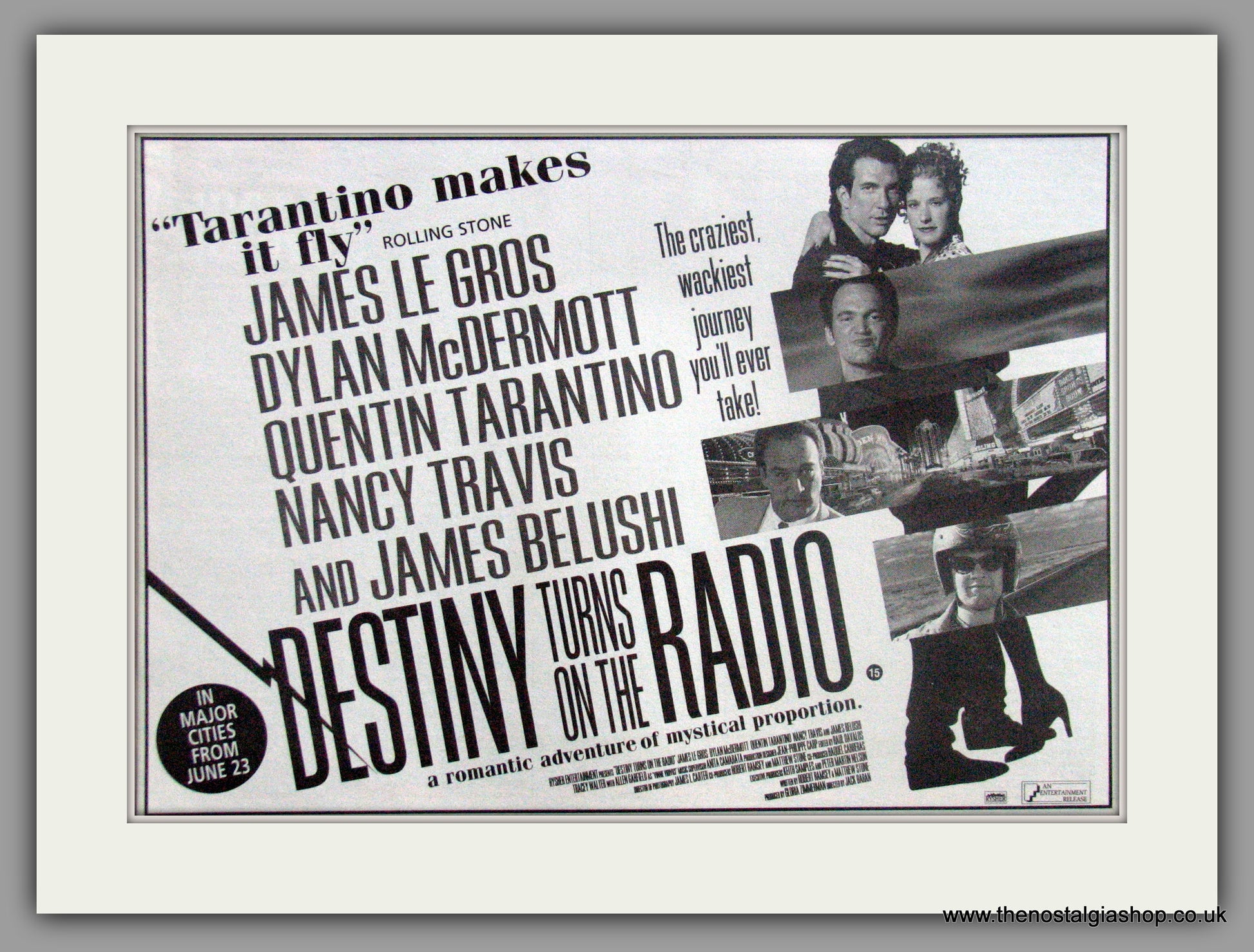 Destiny Turns On The Road-James Le Gros, Nancy Travis. Original Advert from 1995. Presented in creme bevel cut mount with backing board. Made to fit straight into 14 x 11 inch frame.The perfect gift.- These adverts are all taken from Original publications of the dates stated. They are NOT modern reprints. Many are difficult to get hold of , some are very rare and once sold may not be replaced, Remember, you are buying a piece of historic nostalgia.Lots more adverts available. Please contact us if you don't see the advert you want.