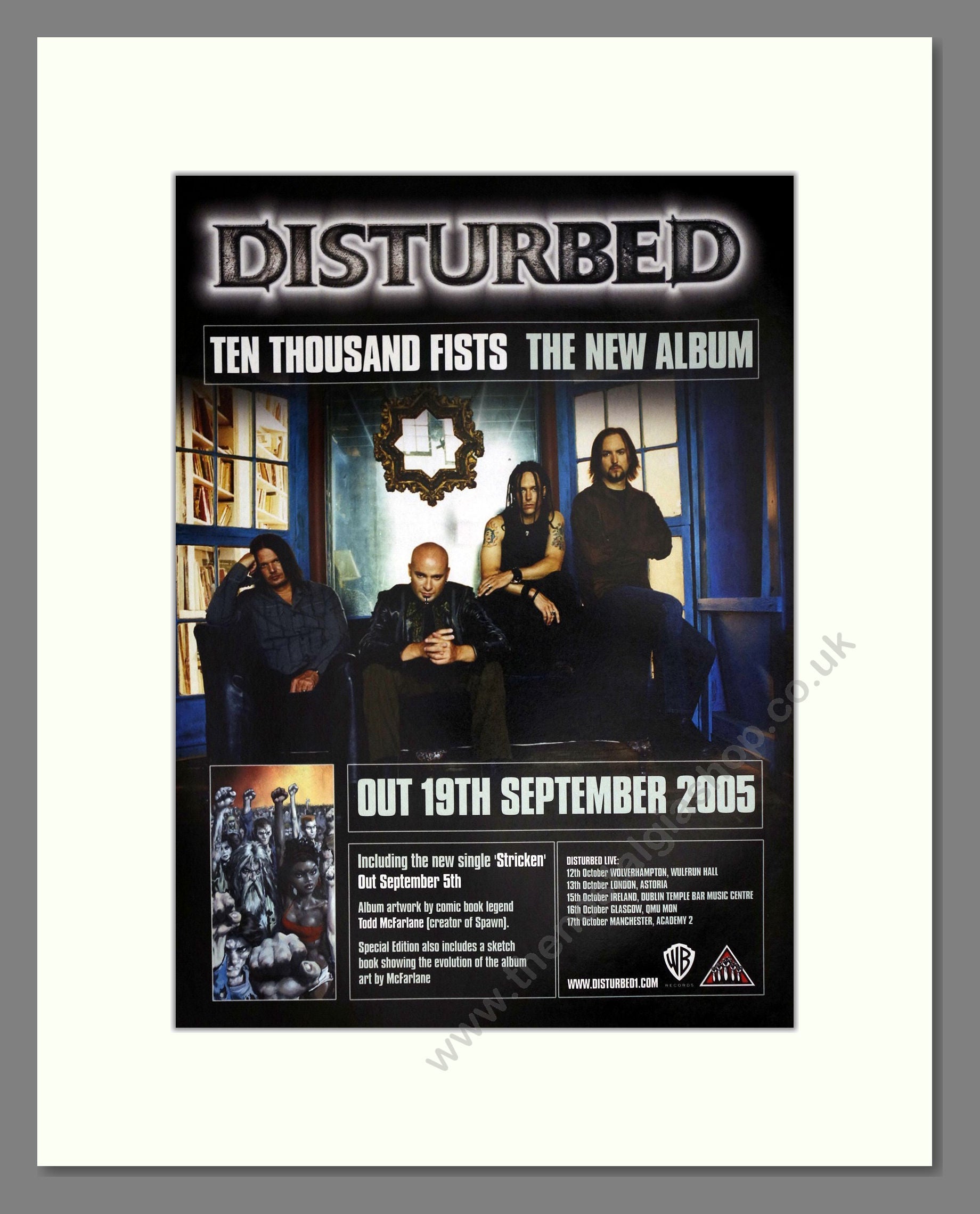 Disturbed - Ten Thousand Fists. Vintage Advert. This is a classic original advert from 2005. Presented and supplied in a cream bevel cut mount with backing card and clear bag. Ready to fit in a 14 x 11 inches frame. The mounted advert will be posted via courier and well packed - protected with a sheet of hardboard to keep it rigid. Any questions or enquiries, please get in touch, we are here to help! All our adverts, unless clearly stated are originals from the date shown. They make excellent pieces of wall art and stunning gifts. Many are rare and hard to find and once sold, may not be replaced. Remember you are buying a piece of history. Website watermark is not on original.