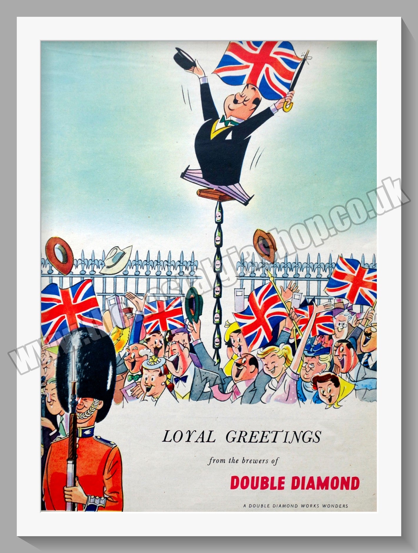 Double Diamond Beer. Vintage Advert. This is a large classic Original Advert 1953. Presented and Supplied in a cream bevel cut mount with backing card and clear bag. Ready to fit in 20 x 16 inch frame. The mounted advert will be posted via courier and well packed - protected with a sheet of hardboard to keep it rigid. Any questions or inquiries, please get in touch, we are here to help! All our adverts, unless clearly stated are Originals from the date shown. They make excellent pieces of wall art and stunning gifts. Many are rare and hard to find and once sold, may not be replaced. Remember you are buying a piece of history. Website watermark is not on original. Vintage drink adverts. Drink Adverts.