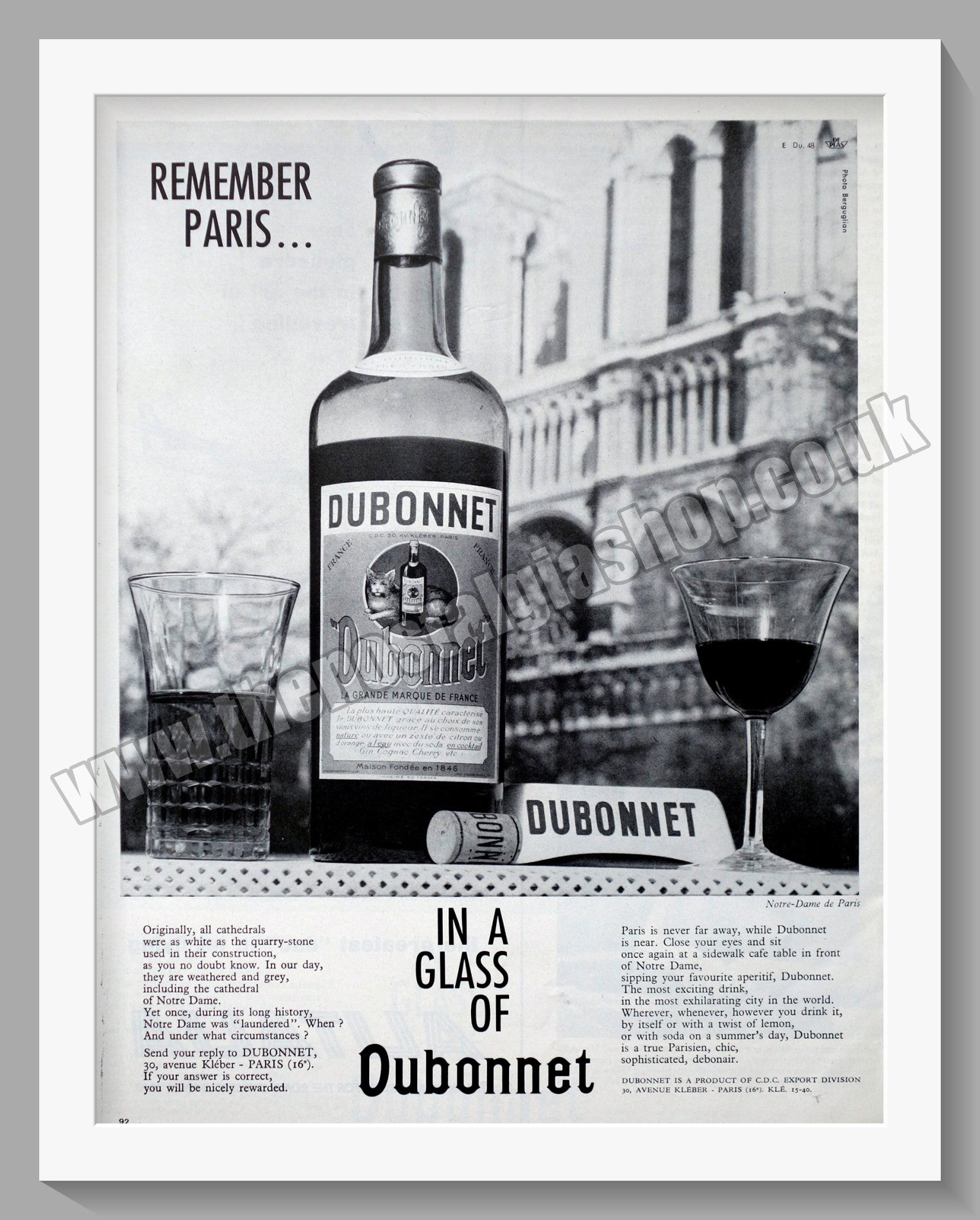 Dubonnet. Vintage Advert. This is a large classic Original Advert 1960. Presented and Supplied in a cream bevel cut mount with backing card and clear bag. Ready to fit in 20 x 16 inch frame. The mounted advert will be posted via courier and well packed - protected with a sheet of hardboard to keep it rigid. Any questions or inquiries, please get in touch, we are here to help! All our adverts, unless clearly stated are Originals from the date shown. They make excellent pieces of wall art and stunning gifts. Many are rare and hard to find and once sold, may not be replaced. Remember you are buying a piece of history. Website watermark is not on original. Vintage drink adverts. Drink Adverts.