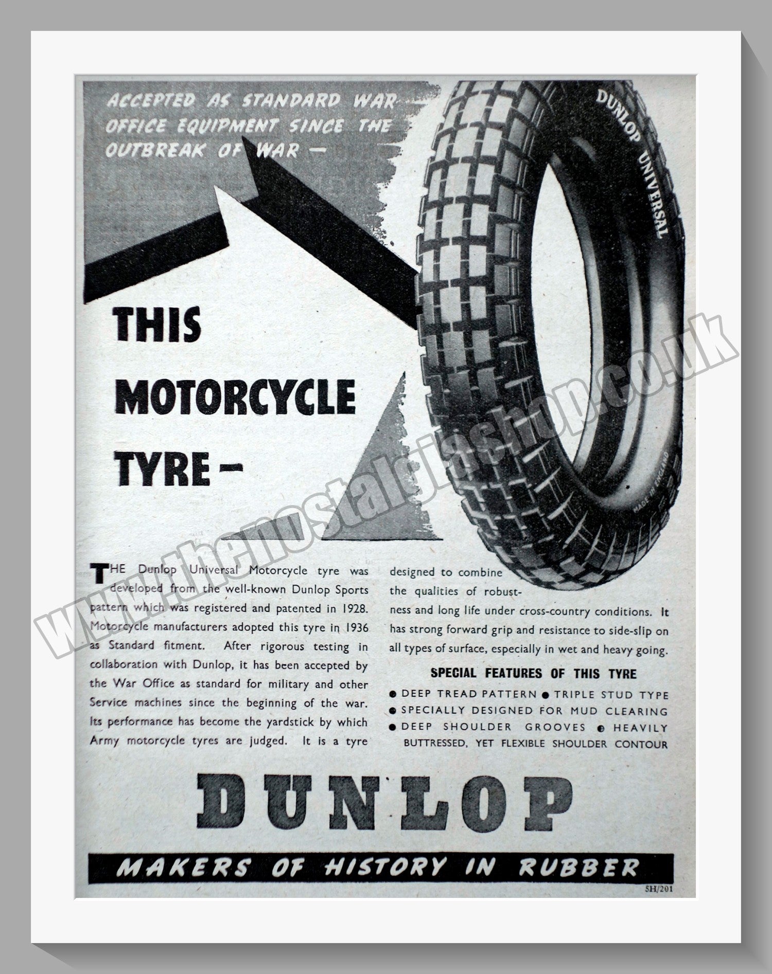 Dunlop Motorcycle Tyres. Original Advert 1945 (ref AD57722)