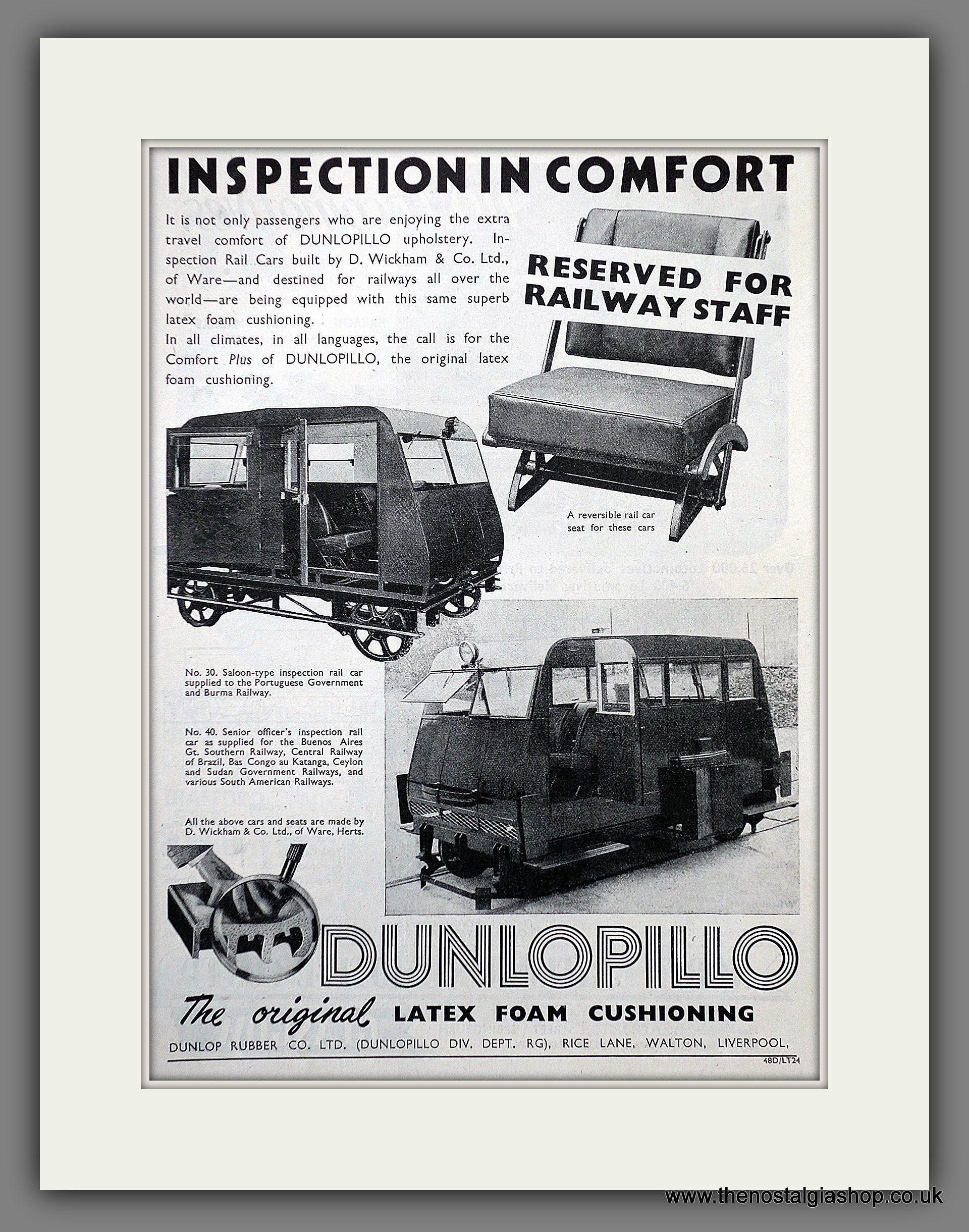 Dunlopillo Railcar Latex foam Cushioning. Original Advert 1948 (ref AD61120)