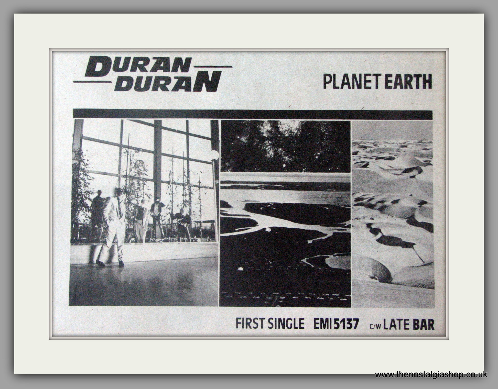 Duran Duran. Debut Single, Planet Earth. Vintage Advert. Classic original advert 1981. Presented in cream bevel cut mount with backing card and display bag. Ready to fit in 14 x 11 inch frame. All our adverts, unless clearly stated are Originals from the date shown. They make excellent pieces of wall art and stunning gifts. Many are rare and hard to find and once sold, may not be replaced. Remember you are buying a piece of history. Website watermark is not on original.