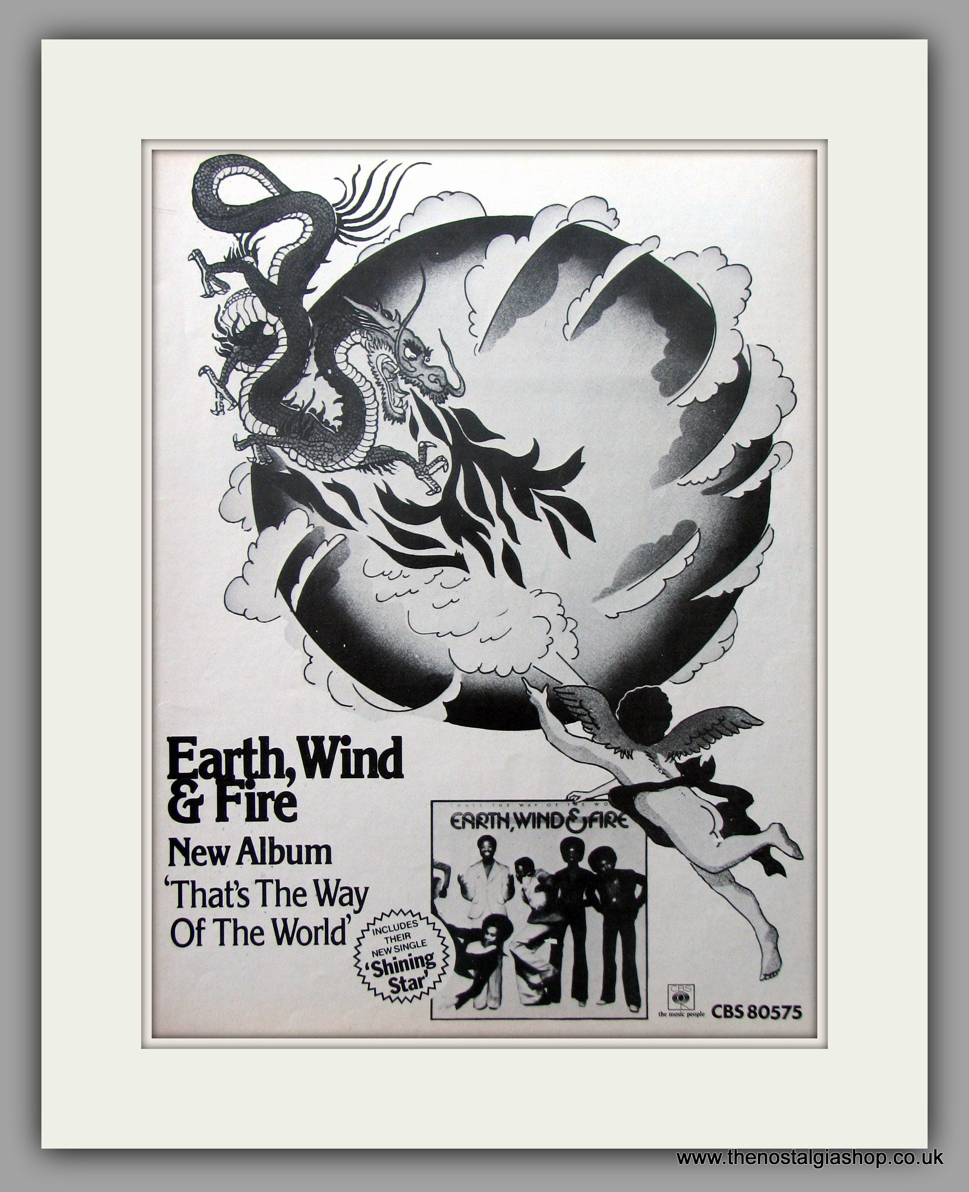 Earth, Wind and Fire, That's The Way Of The World. Classic original advert 1975. Presented in cream bevel cut mount with backing card and clear bag. Ready to fit in 14 x 11 inch frame. Want it framing? If so, buy this then go to Frames Available Category. Click to buy on the suitable frame and we will do the rest. All our adverts, unless clearly stated are Originals from the date shown. They make excellent pieces of wall art and stunning gifts. Many are rare and hard to find and once sold, may not be replaced. Remember you are buying a piece of history. Website watermark is not on original. Motown, Blues, Soul, Funk, Disco.