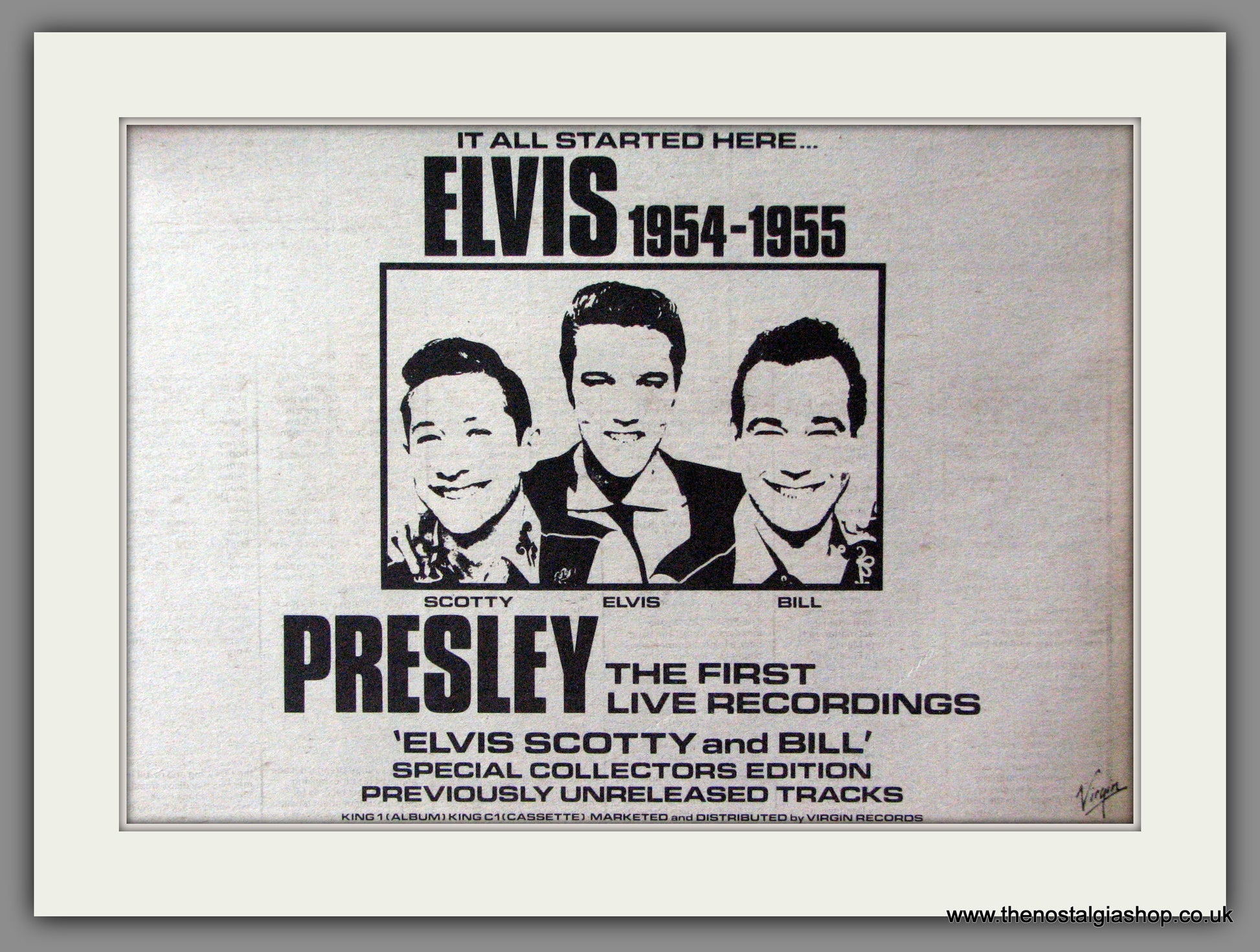 Elvis Presley. 1954 - 1955, The First Live Recordings. Elvis Scotty and Bill. Classic original advert 1980. Presented and Supplied in cream bevel cut mount with backing card and clear bag. Ready to fit in 14 x 11 inch frame. Want it framing? If so, buy this then go to Frames Available Category. Click to buy on the suitable frame and we will do the rest. All our adverts, unless clearly stated are Originals from the date shown. They make excellent pieces of wall art and stunning gifts. Many are rare and hard to find and once sold, may not be replaced. Remember you are buying a piece of history. Website watermark is not on original.
