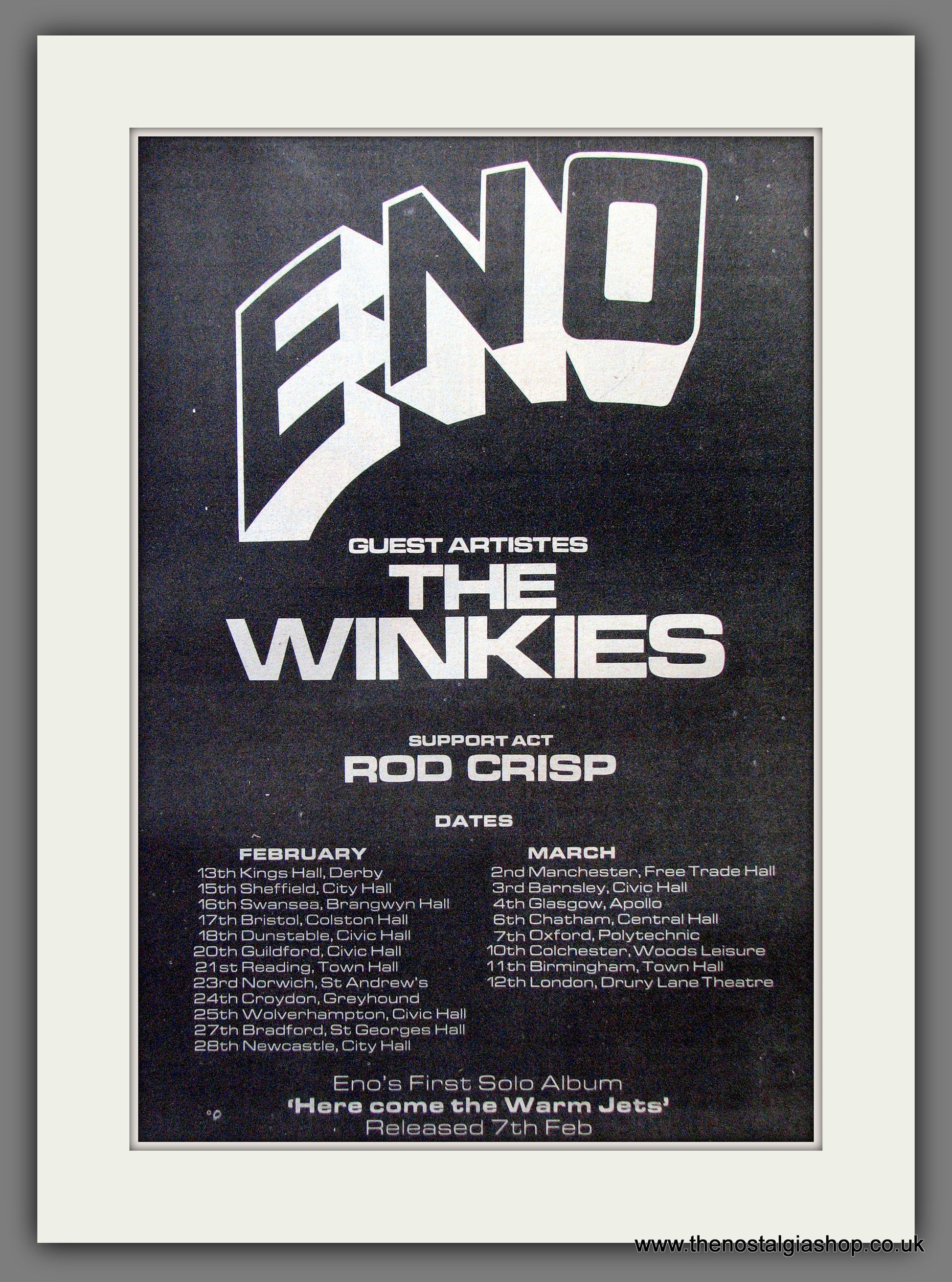 Eno And The Winkies Tour Dates. Original Advert 1974 (ref AD12896)