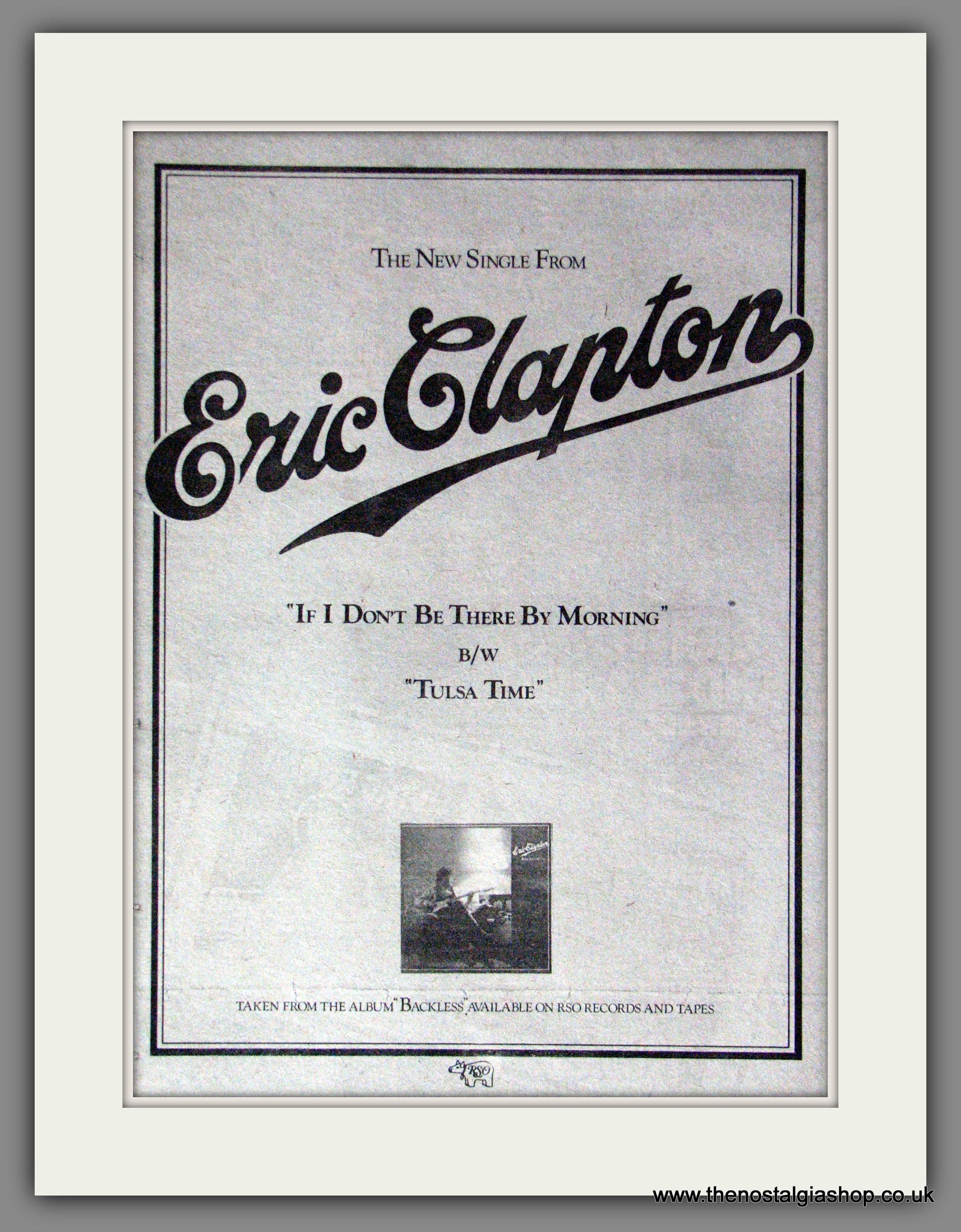 Eric Clapton. If I Don't Be There By Morning. Classic original advert 1979. Presented and Supplied in cream bevel cut mount with backing card and clear bag. Ready to fit in 14 x 11 inch frame. Want it framing? If so, buy this then go to Frames Available Category. Click to buy on the suitable frame and we will do the rest. All our adverts, unless clearly stated are Originals from the date shown. They make excellent pieces of wall art and stunning gifts. Many are rare and hard to find and once sold, may not be replaced. Remember you are buying a piece of history. Website watermark is not on original.